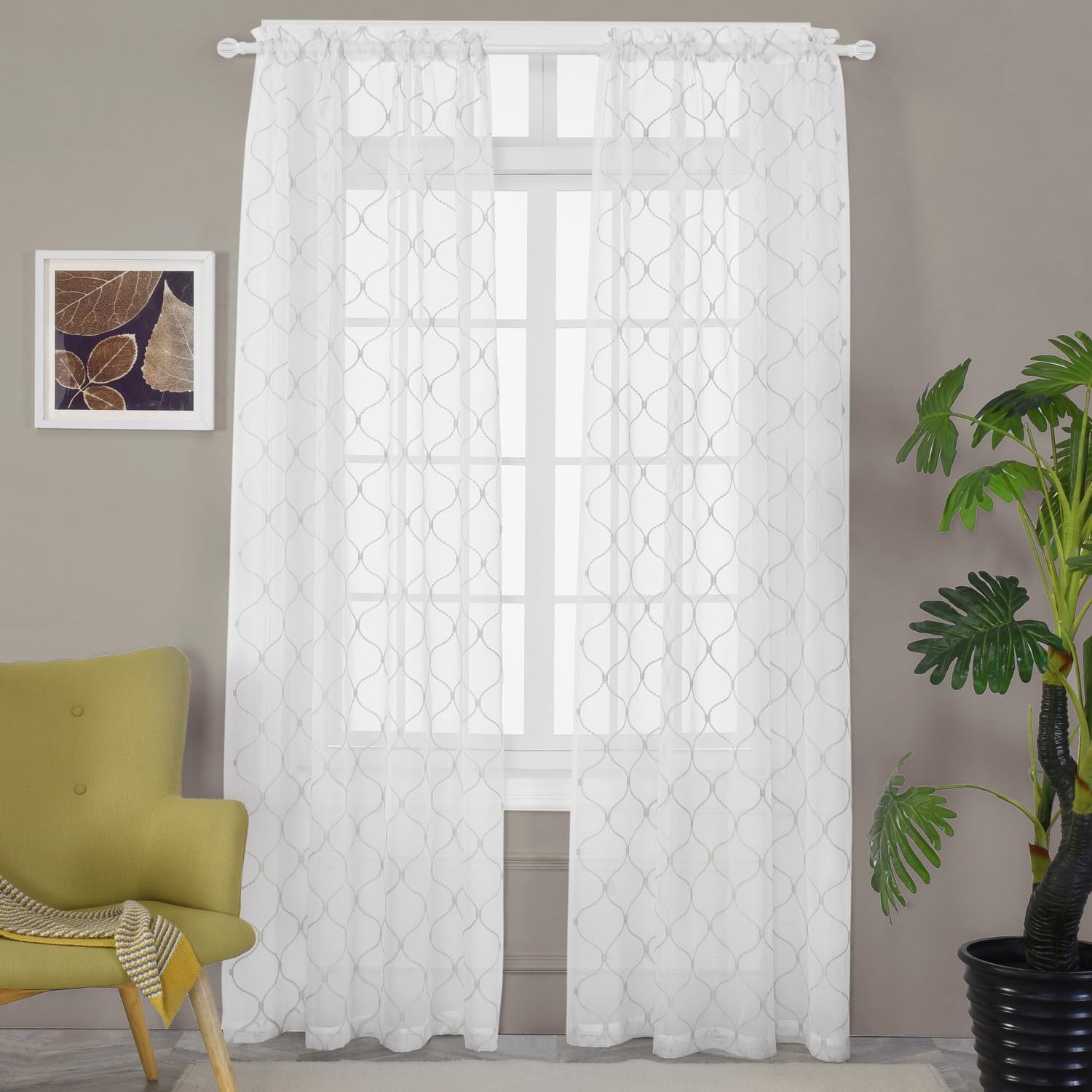 • ☀SIZES TO FIT EVERY NEED. Embroidery Sheer Window Curtain Panels measure 52" wide and are available in lengths of 45",63", 84", 95".