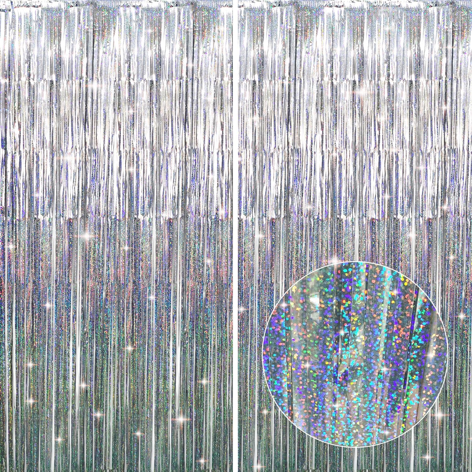 • Package Includes:2 pack shiny silver foil fringe curtains,3.2 ft x 8.2 ft each,suitable for hanging on a door or coverage a wall fully