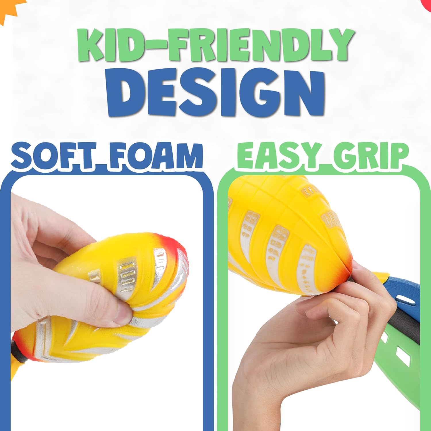 • Kid-Friendly Design: Crafted with soft, cushiony foam, these footballs prioritize kid safety, allowing for worry-free play without the risk of injuries