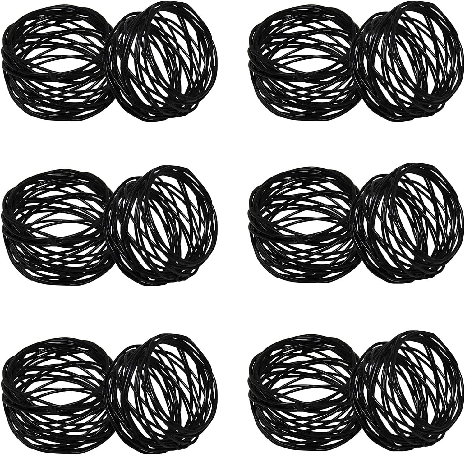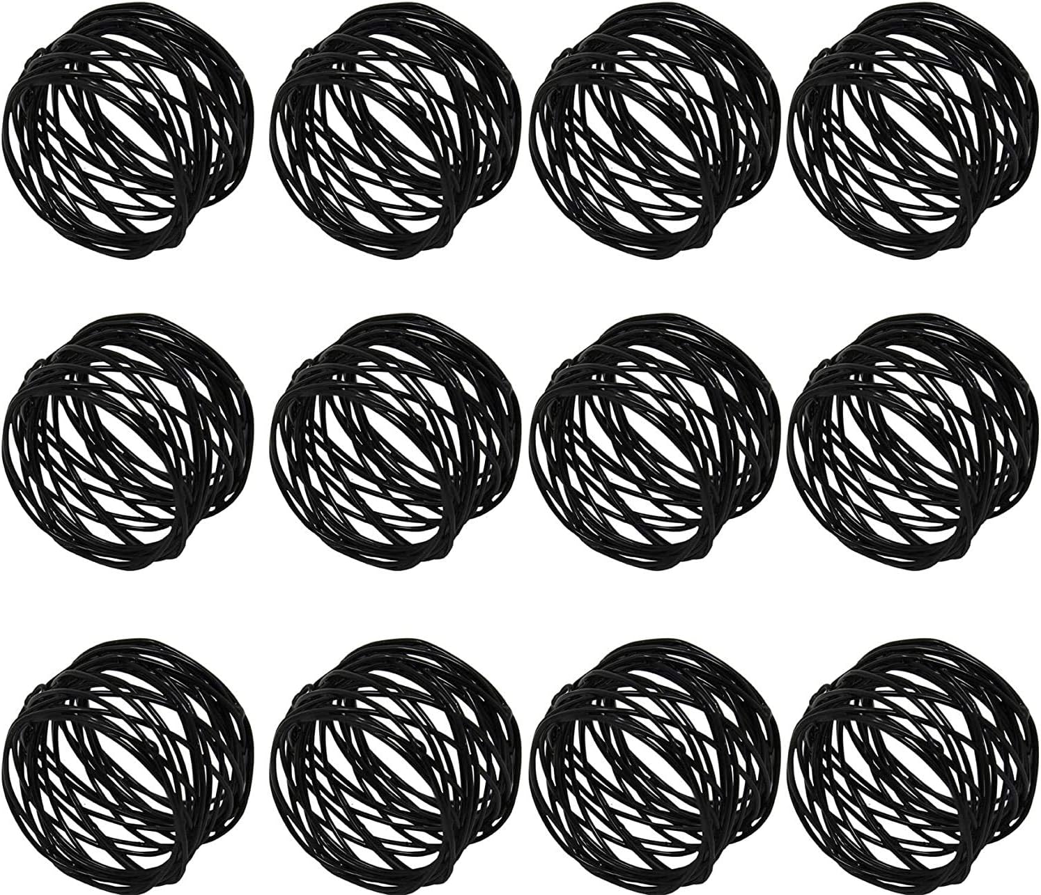 Handmade Round Mesh Black Napkin Rings Holder for Dinning Table Parties Everyday, Set of 12