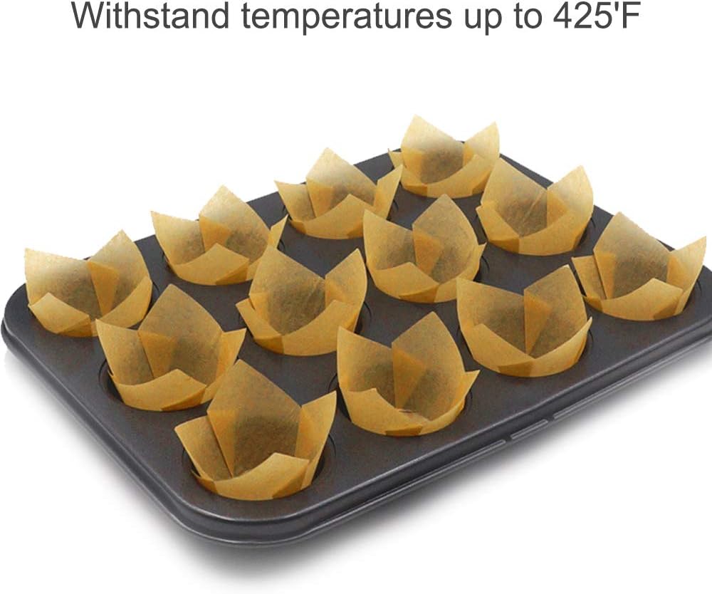 • Standard size tulip baking paper cups - 1.96 x 2.98 x 3.1 inch (bottom x top x height), suitable for all kinds of standard muffin/cupcake baking pan, pack of 150.