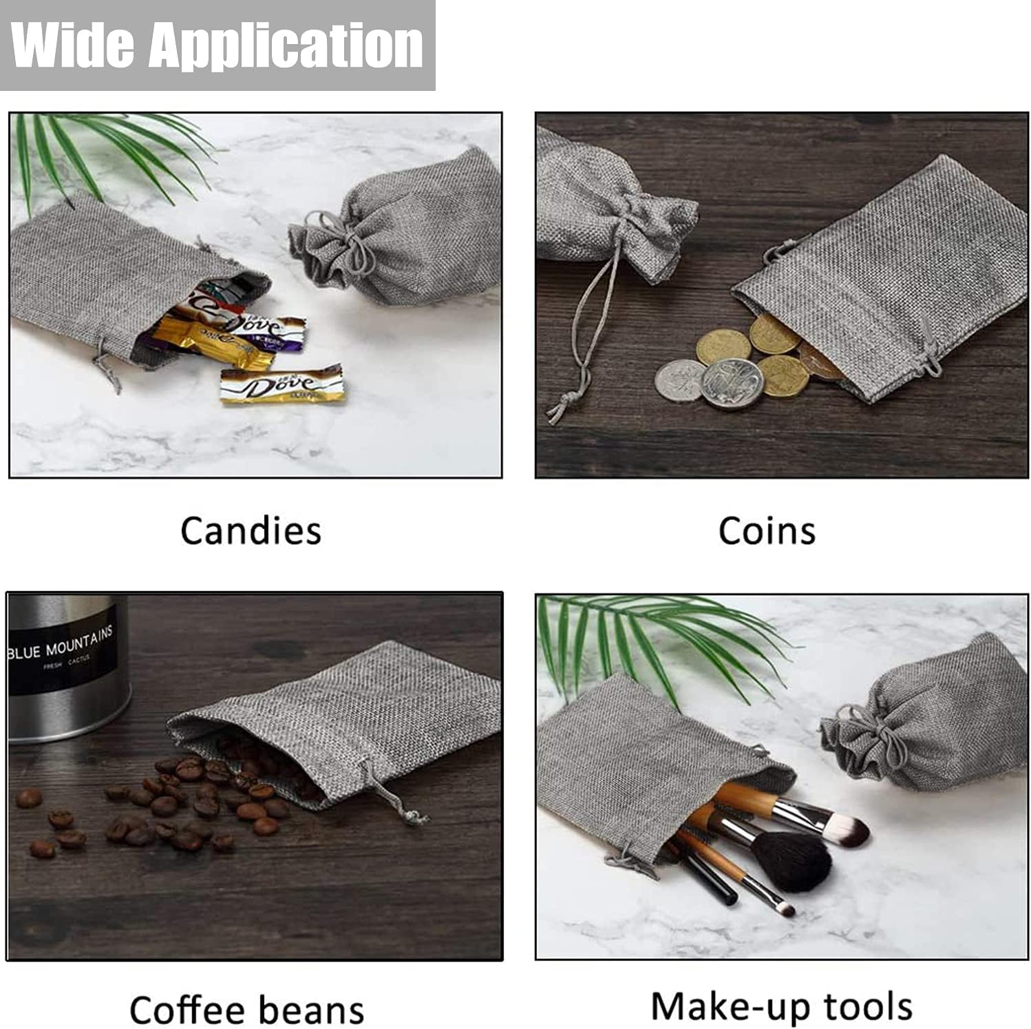 • The natural bags are suitable for wedding, bridal shower, birthday, party, celebrations, festival, baby shower ect; Perfect for favor, gifts, jewelry, cosmetic, coins, watches, sachets, coffee beans, seeds, soaps, candles and so on.