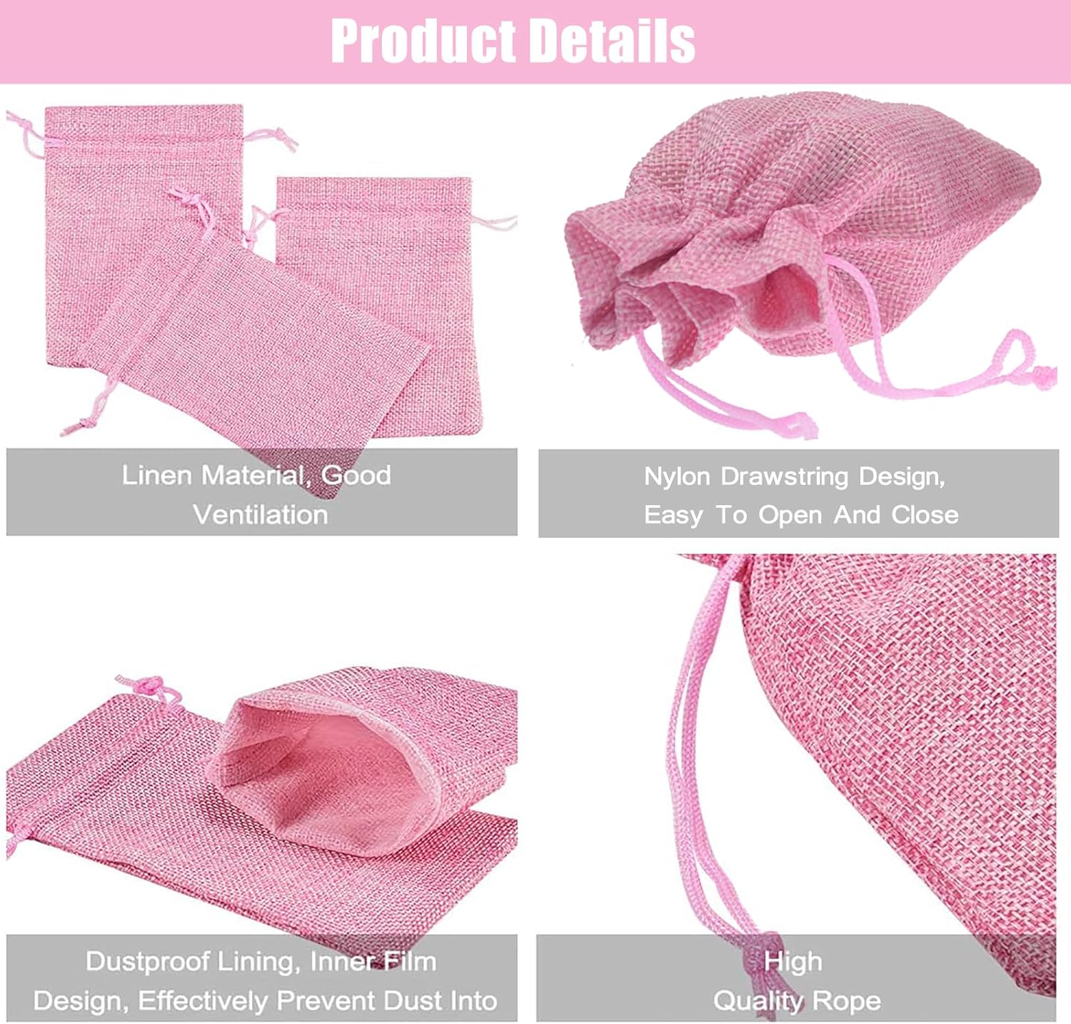 20Pcs Burlap Bags with Drawstring, Burlap Gift Bag Linen Jewelry Pouches for Christmas Wedding Favor, Party, DIY Crafts (Pink, 3.9 x 5.5 Inch)