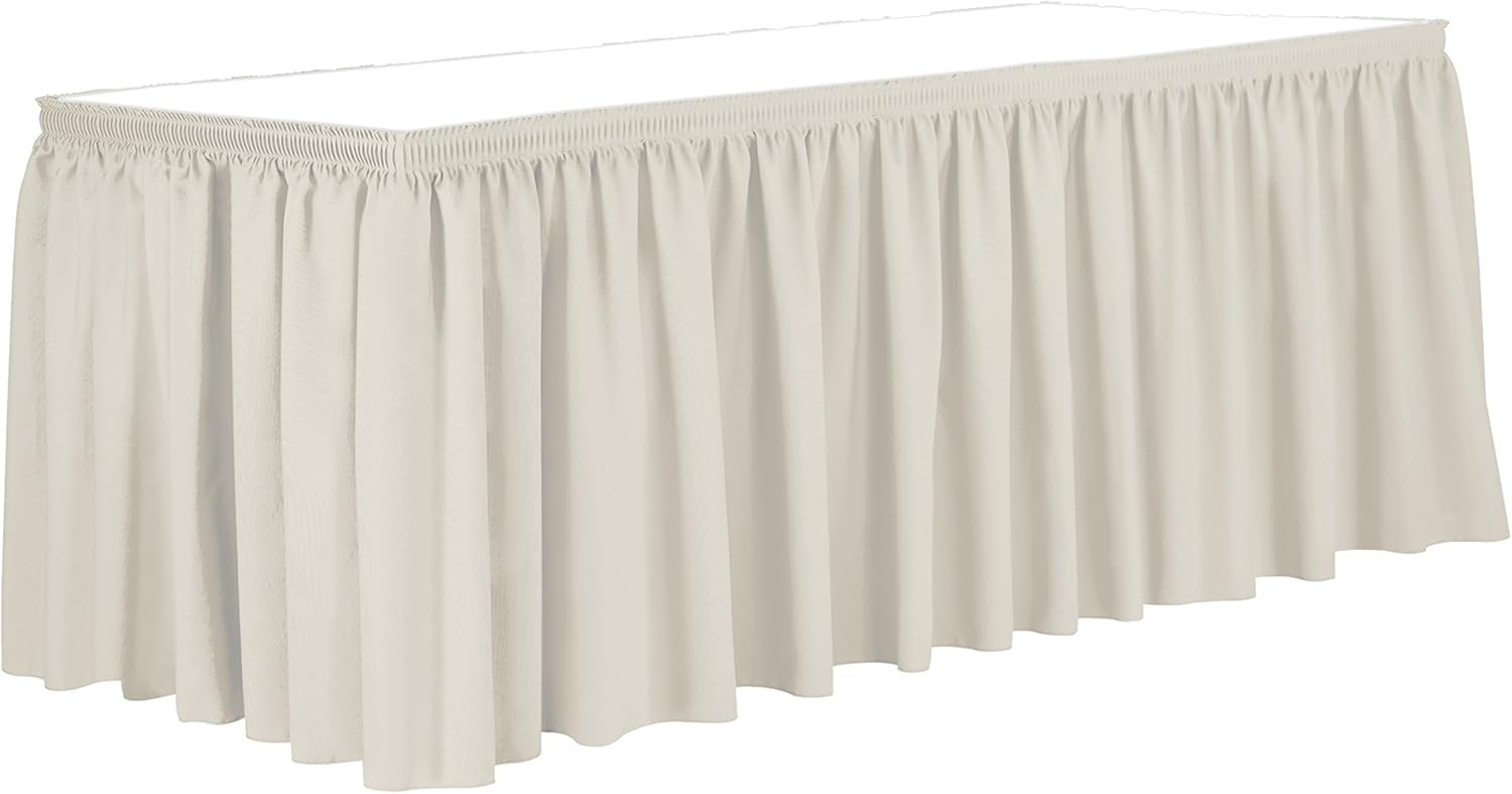 Ultimate Textile Pleat Polyester Fabric Table Skirt - Machine Washable Flame Resistant with Clips for Events, Weddings & Trade Shows, Cut & Sewn in Paterson, NJ - Ivory, 21' Shirred Pleat