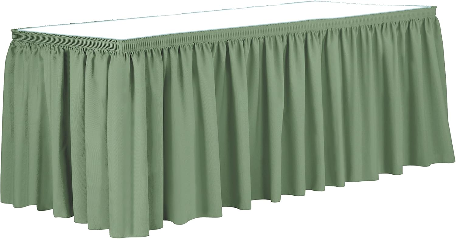 Ultimate Textile Pleat Polyester Fabric Table Skirt - Machine Washable Flame Resistant with Clips for Events, Weddings & Trade Shows, Cut & Sewn in Paterson, NJ - Sage, 14' Shirred Pleat