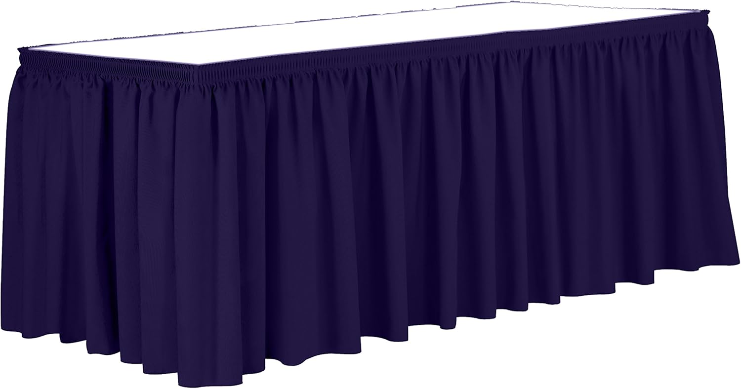 Ultimate Textile Pleat Polyester Fabric Table Skirt - Machine Washable Flame Resistant with Clips for Events, Weddings & Trade Shows, Cut & Sewn in Paterson, NJ - Purple, 21' Shirred Pleat