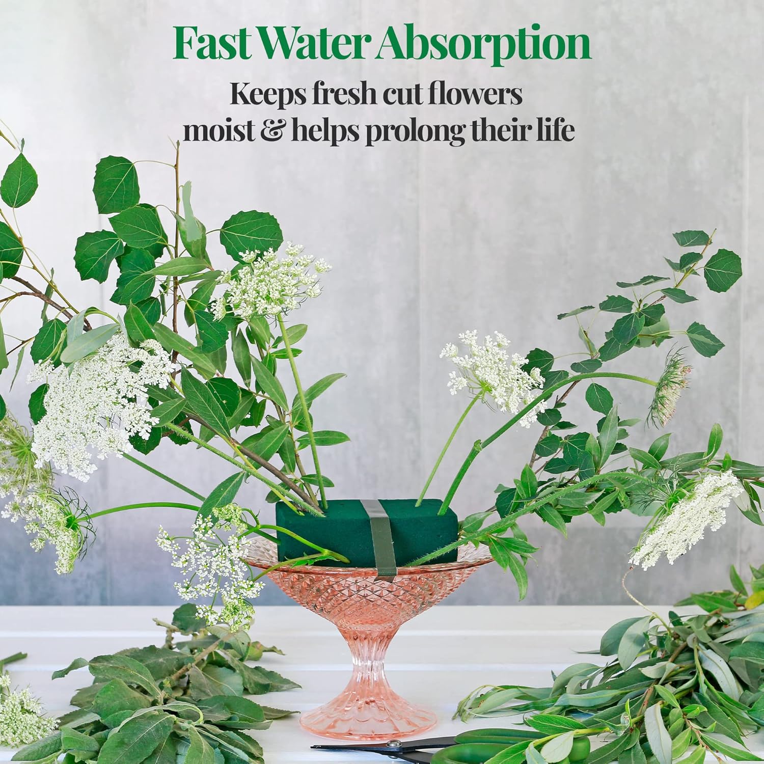 • 𝐅𝐥𝐞𝐱𝐢𝐛𝐥𝐞 𝐖𝐞𝐭 𝐚𝐧𝐝 𝐃𝐫𝐲 𝐔𝐬𝐞: Our foam bricks are versatile for all your floral needs. For fresh arrangements, submerge them in water to activate the air-filled cells that absorb and hold moisture, keeping flowers hydrated for 7-10 days. They're also perfect for securely holding silk and dried flowers for stunning, long-lasting displays.