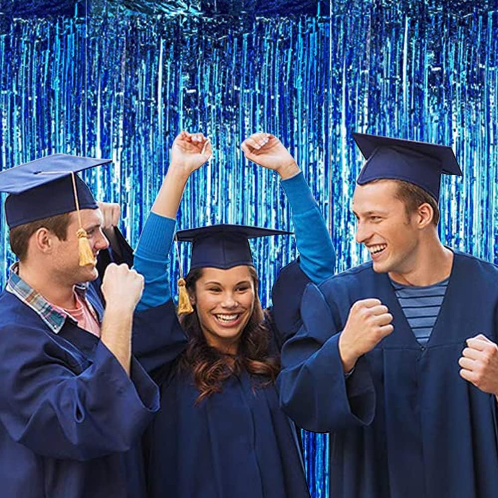 BEISHIDA 2 Pcs Blue Door Streamers Tinsel Curtain Party Backdrop Fringe Foil Wall Background for Birthday Halloween Christmas Wedding Boys Baby shower Party Decoration(3.28 ft x 6.56 ft)