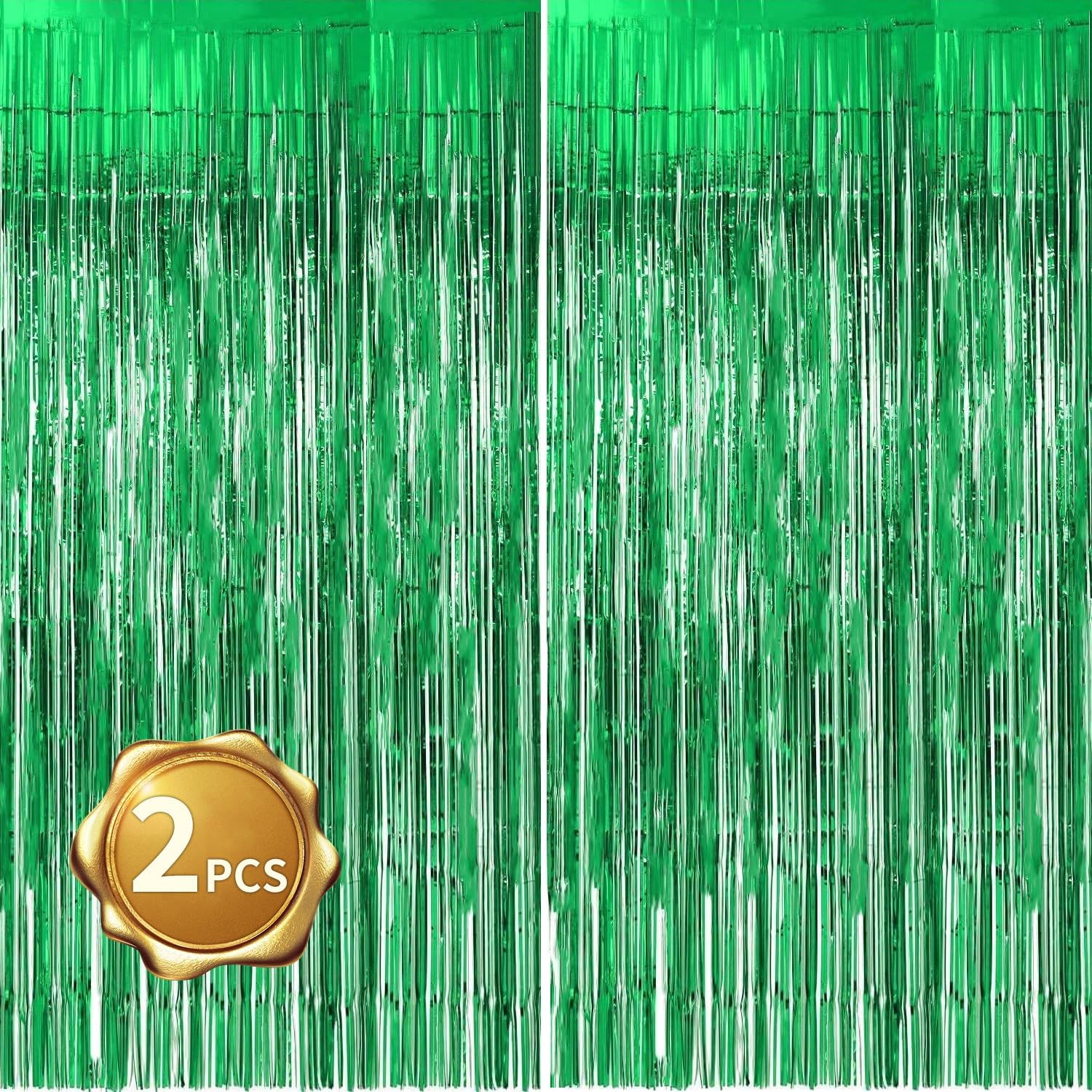 BEISHIDA 2 Pcs Green Door Streamers Tinsel Curtain Party Streamers Backdrop Fringe Foil Wall Background for Birthday Halloween Christmas Wedding Party Decoration(3.28 ft x 6.56 ft)