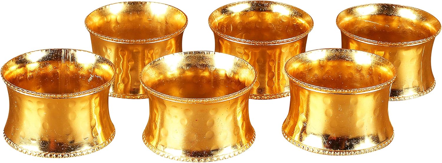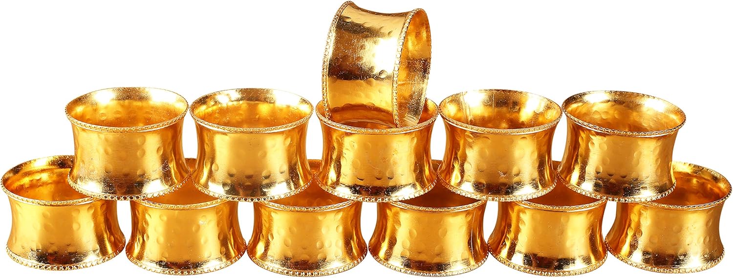 Everyday Metal Napkin Rings Set of 12 – Handmade Hammered Gold Napkin Holders for Weddings, Dinner Parties, Family Gatherings & Daily Table Décor