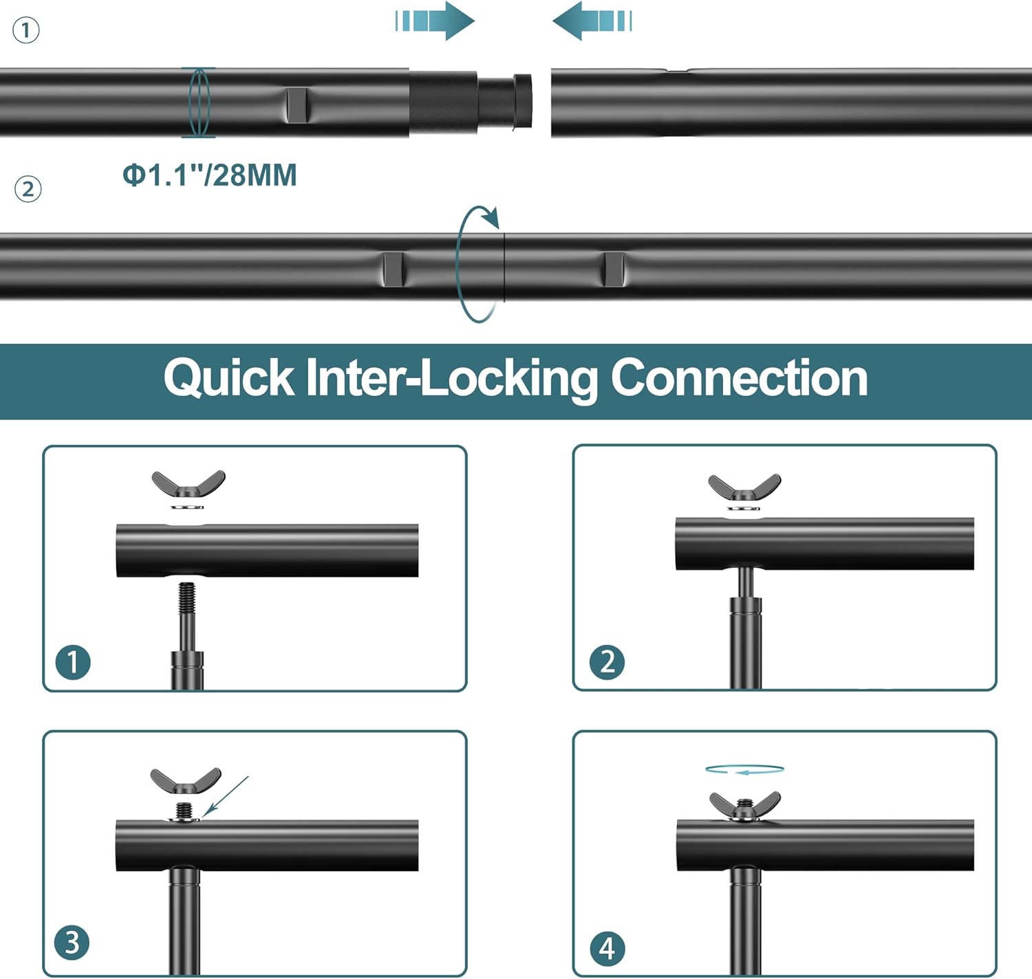 • The Heavy Duty Backdrop Support System Is Easy To Set Up And Take Down,No Need For Any Tools.Aluminium Material, Stable And Sturdy, Suitable For Backdrop, Home, Studio Or Outdoor