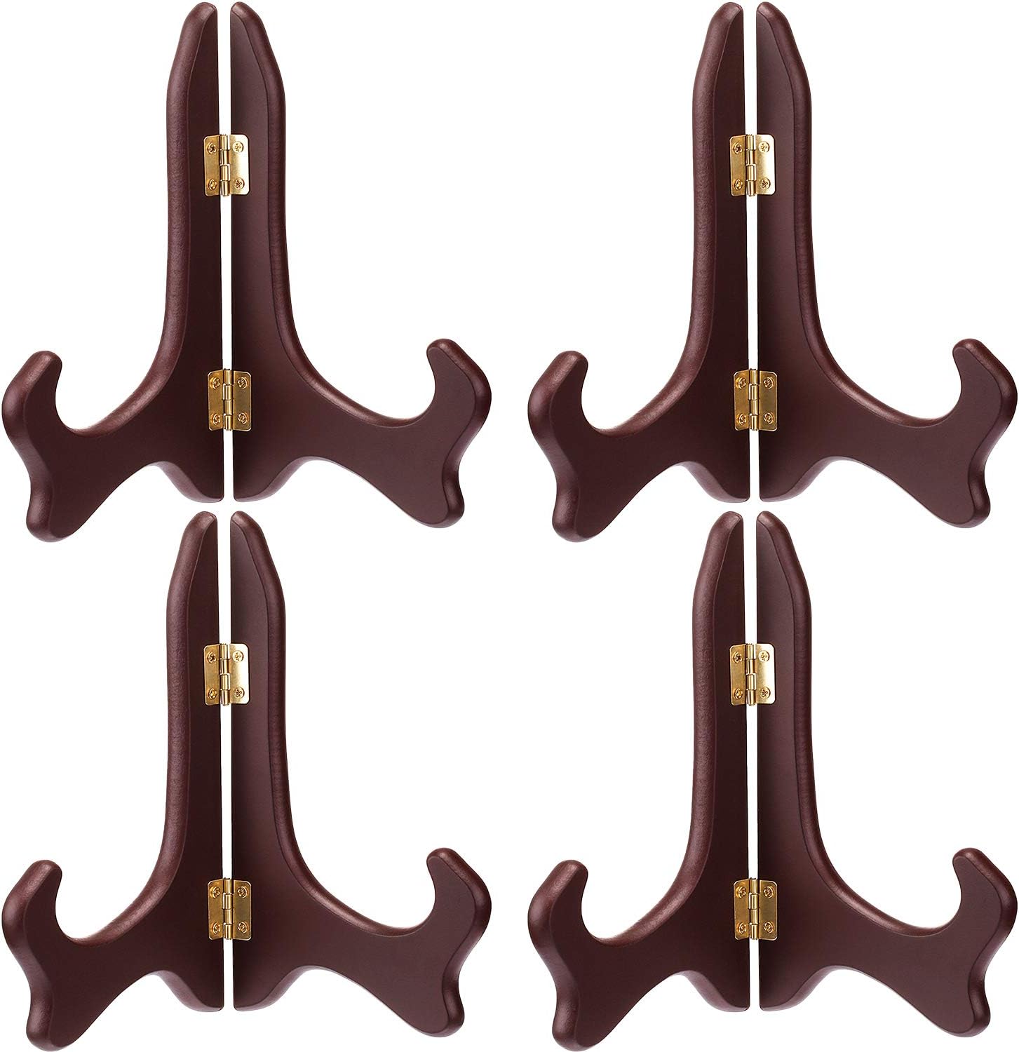 Tatuo 4 Packs Wooden Display Stand Decorative Plate Stands for Display Picture Frame Holder Easels(Red,5 Inch)