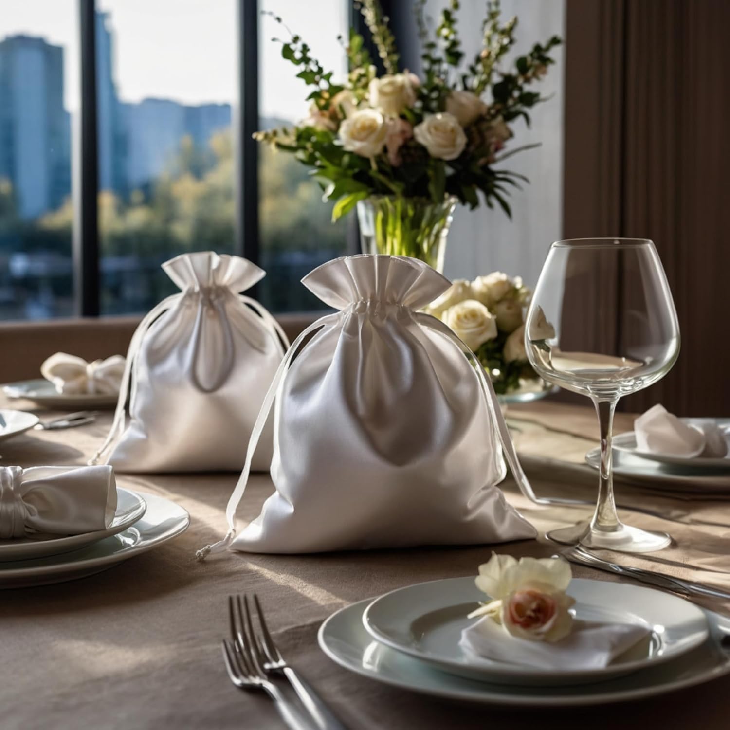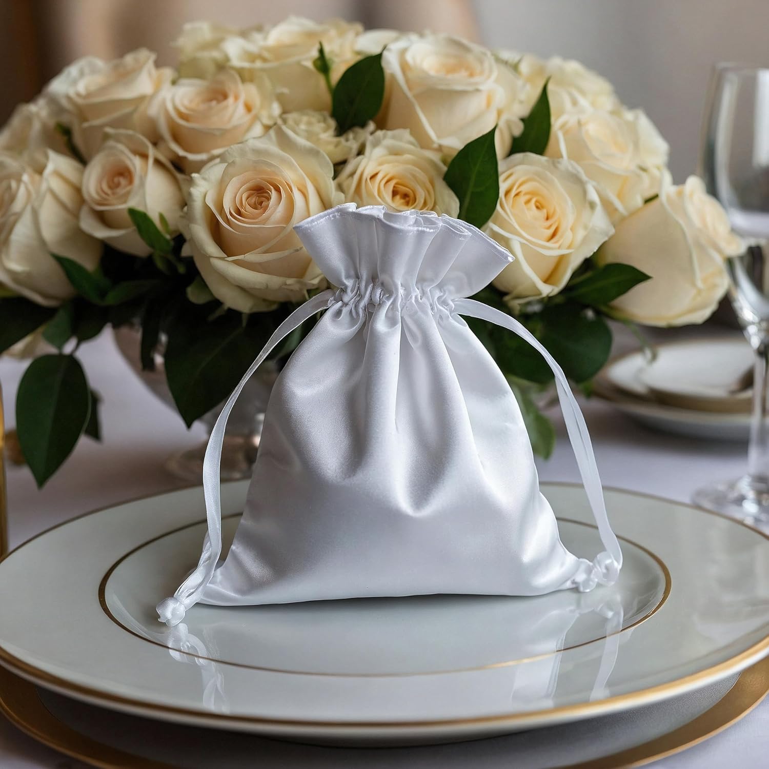 3" x 4" White Satin Gift Bags, Jewelry Bags, Wedding Favor Silky Drawstring Baby Shower Christmas 50 per Pack