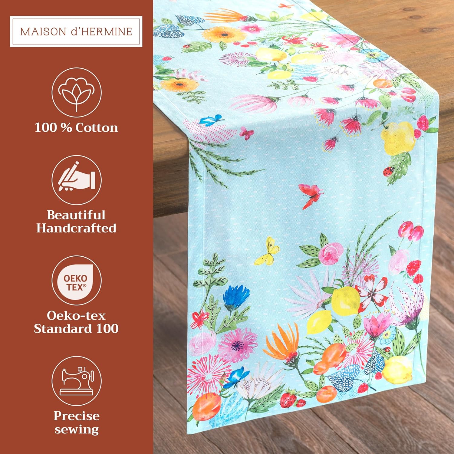 • Unique design: Each table runners features watercolor artwork inspired by traditional European motifs, with intricate details and vibrant hues. Designed in Europe and made in India, it captures the warmth and elegance of artisan-crafted décor.