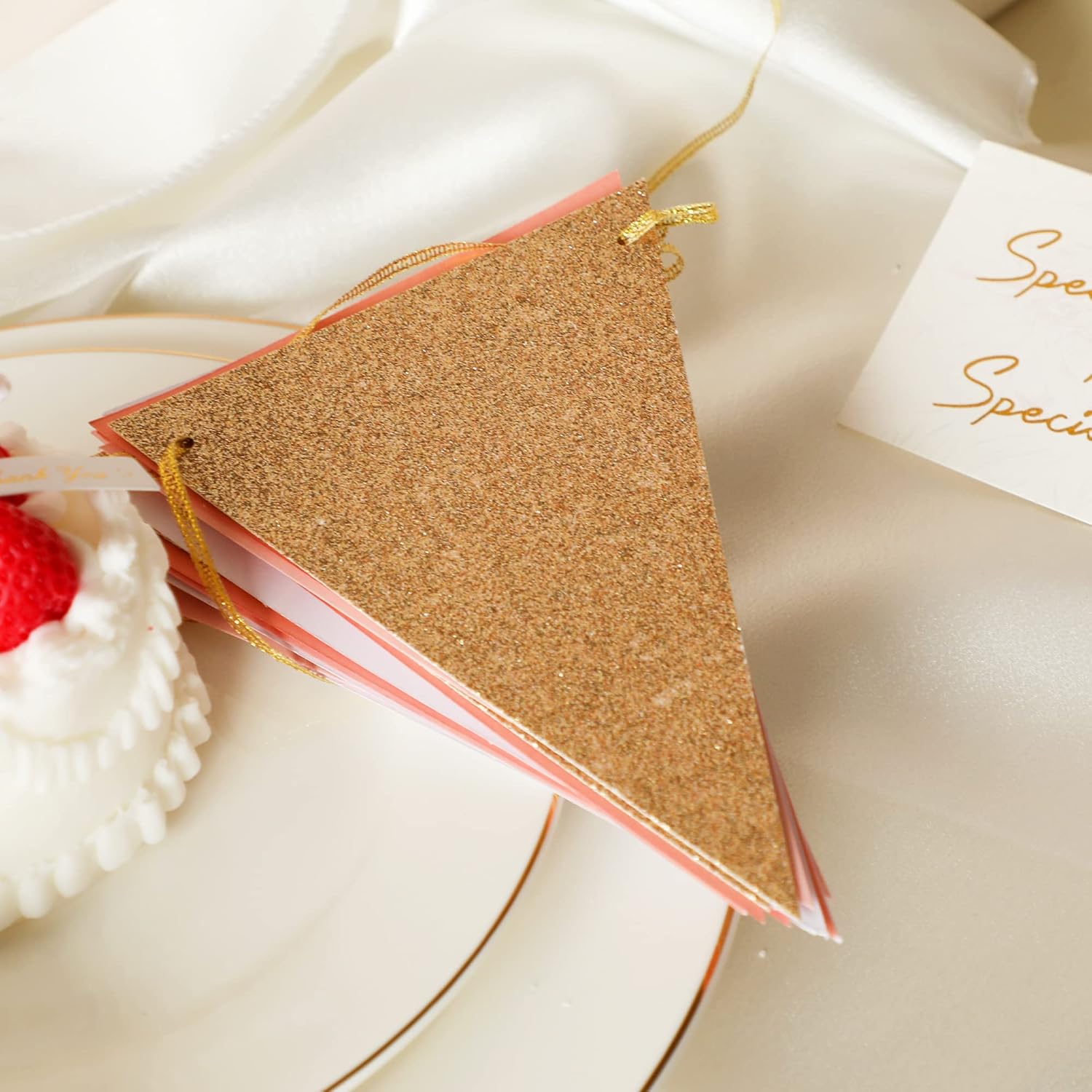 Fonder Mols 10-feet Vintage Flags of Paper Pennant Banner, Triangle Flags Bunting Banner Garland for Boho Wedding, Baby Shower, Girl Room Nursery Decoration (Ivory+Pink+Rose Gold Glitter)