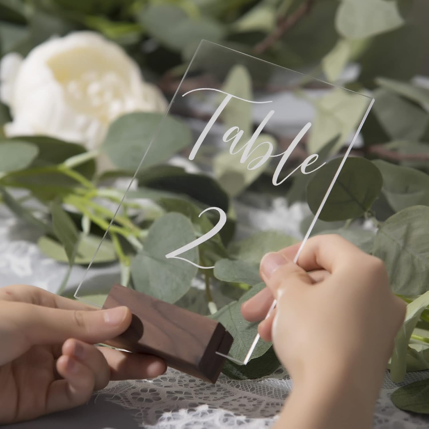 • Package Includes - A set of 20 wood table sign holders; Dimensions: 2 3/8 x 1 1/8 x 1inch Lx Wx D. Please note that all place cards and acrylic signs shown in the pictures are NOT included.
