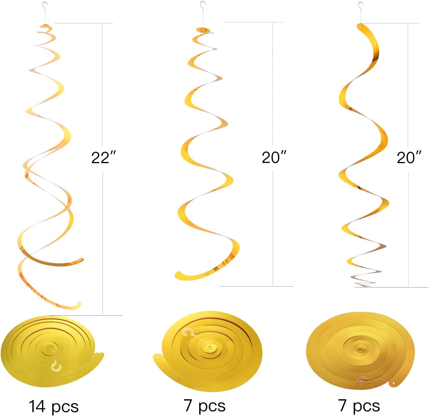Gold Party Hanging Swirl Decorations Plastic Streamer for Ceiling, Pack of 28