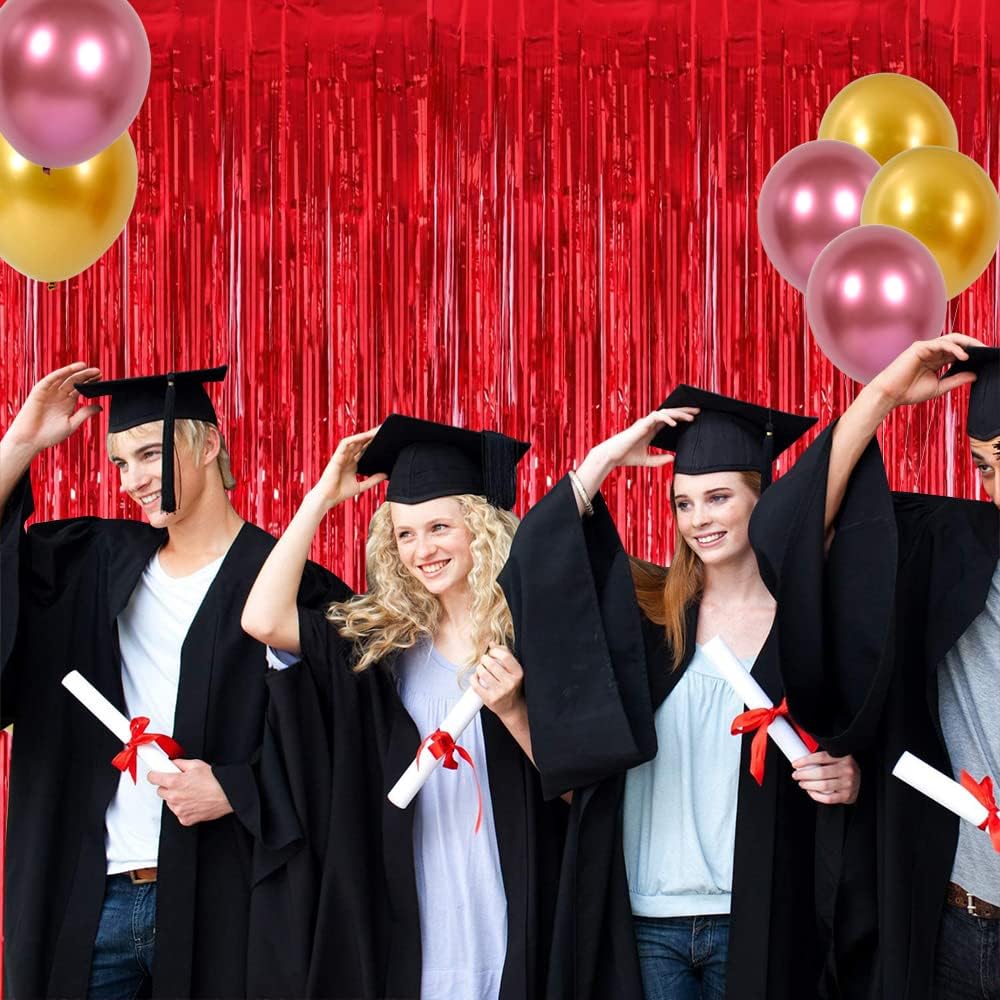 3Pcs Red Metallic Tinsel Foil Fringe Curtains,3.28ft x 6.56ft Red Photo Booth Backdrop Streamer Curtain,Photo Booth Props,Ideal Bachelorette Party Supplies,Birthday, Christmas,New Year Decorations