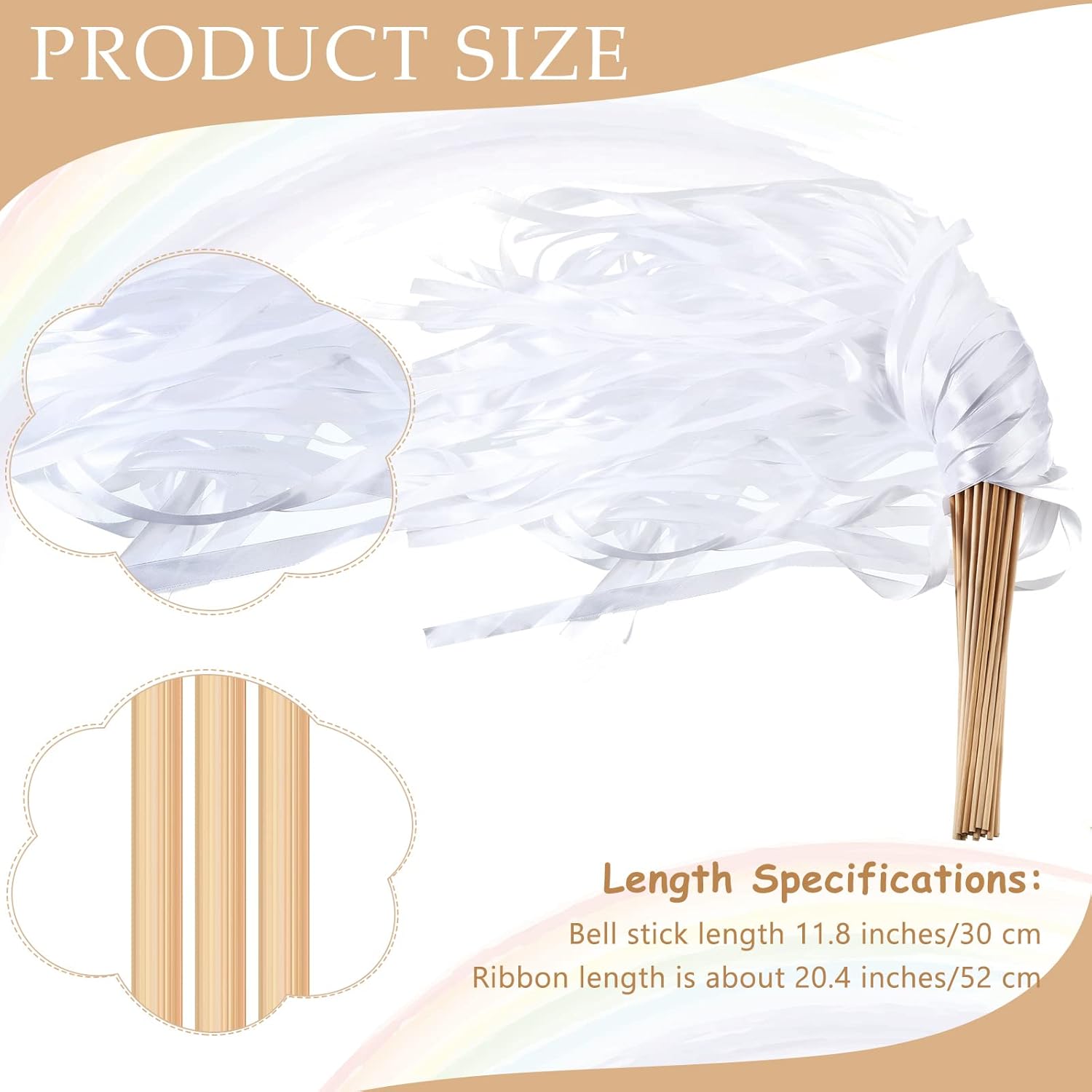 Boao 40 Pieces Mixed Color Ribbon Sticks with Bell, Ribbon Sticks for Stick Party, Streamers for Wedding Birthday Party Celebration Baby Shower Favors(White)