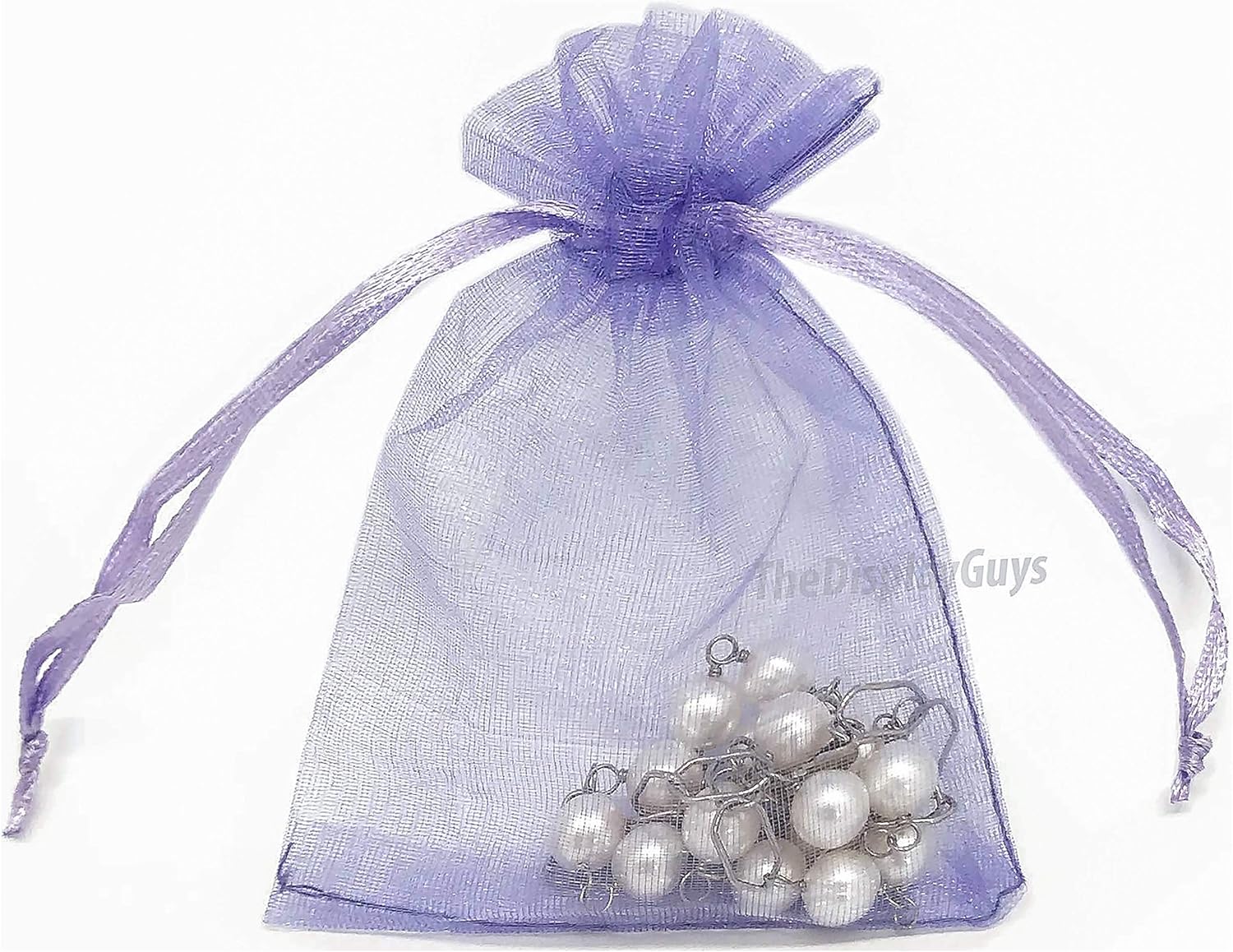 TheDisplayGuys 48-Pack 3x4 Lavender Sheer Organza Gift Bags with Drawstring, Goodie Bags for Jewelry, Candy Bags, Treat Bags, Wedding Favors Small Mesh Bags