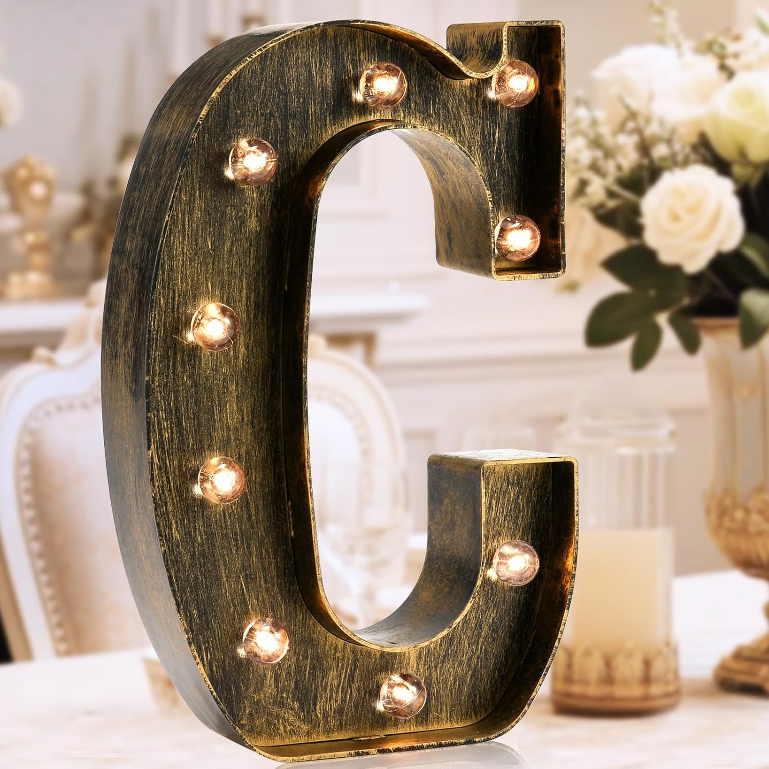 • Create In Your Way: Vintage-inspired letters perfect to compliment a rustic, farmhouse style.Use this light up letter to spell out a message such as “WELCOME” in your party, “MARRY ME” at a wedding and so on. The décor opportunities are endless