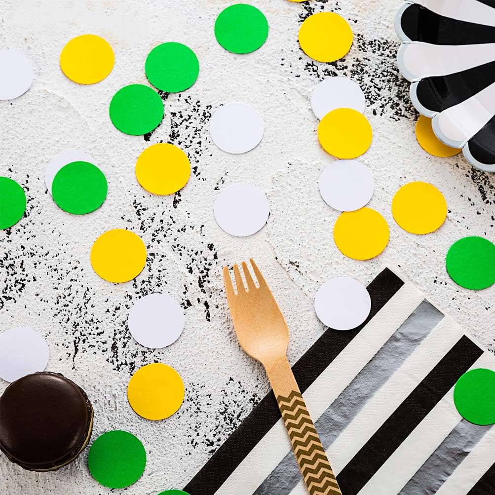 • Confetti Yellow,Green,White. 200pc circle dots confetti,each dots 1.2’’ in diameter,high quality craft paper confetti