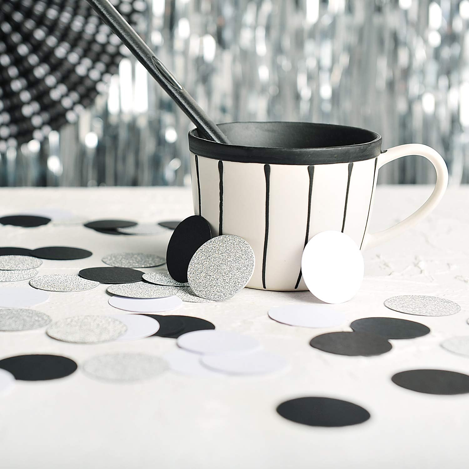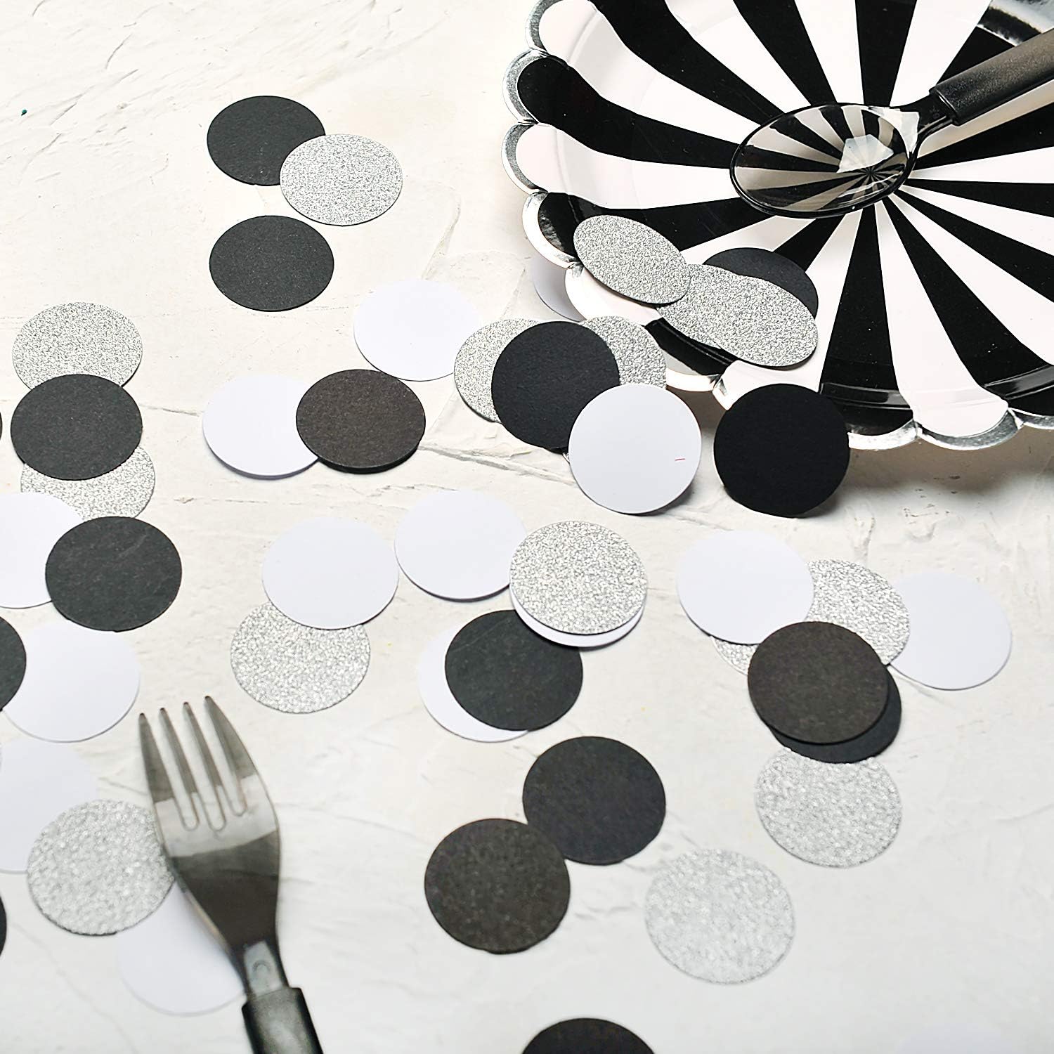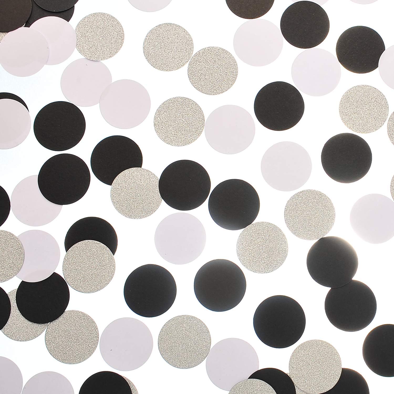 • Confetti Silver Glitter,Black,White. 200pc circle dots confetti,each dots 1.2’’ in diameter,high quality craft paper confetti