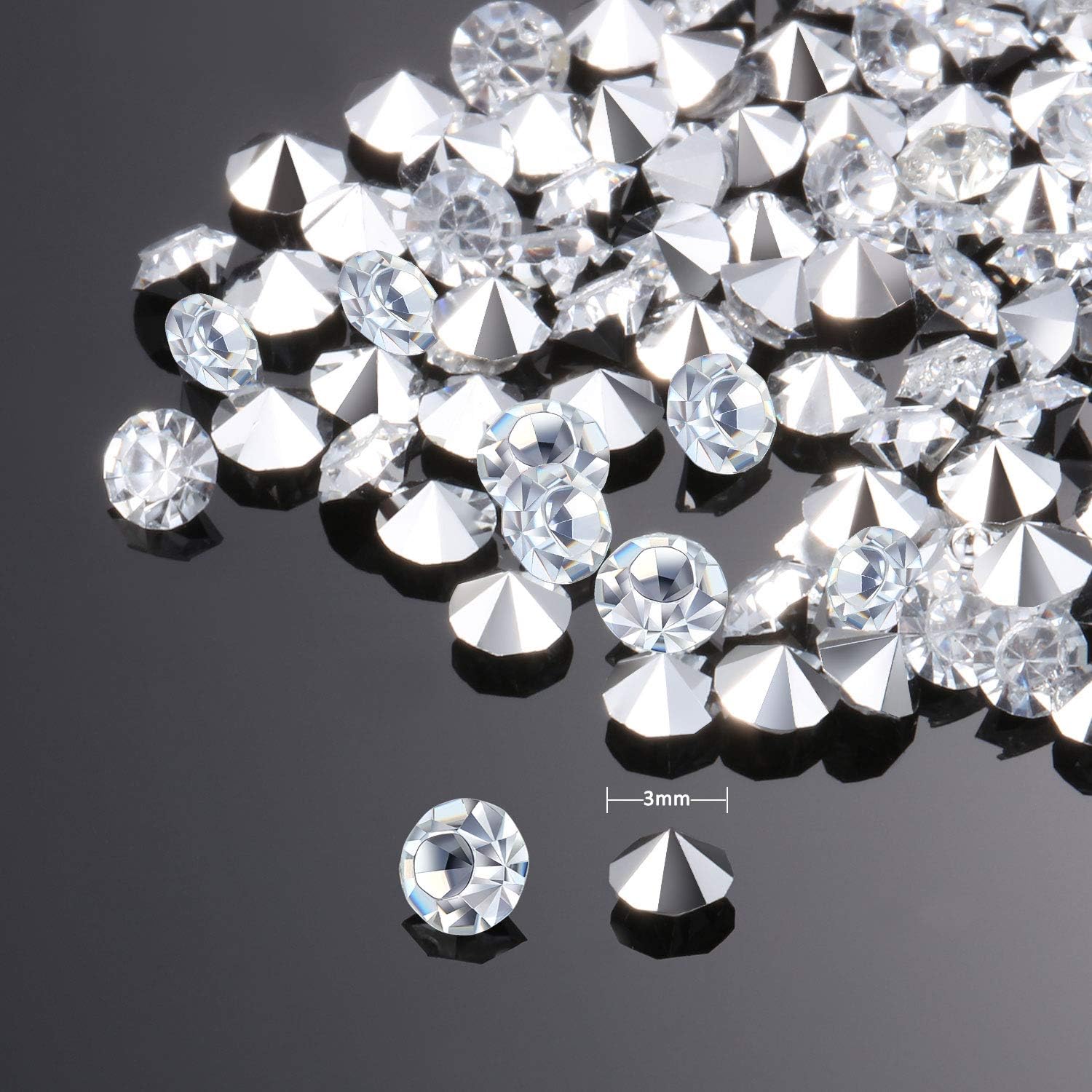 • Quantity and size: package includes 10000 pack silver acrylic diamonds; Each pack diameter measures about 3 mm/ 0.12 inch (please note these are faux diamonds and not real diamonds)