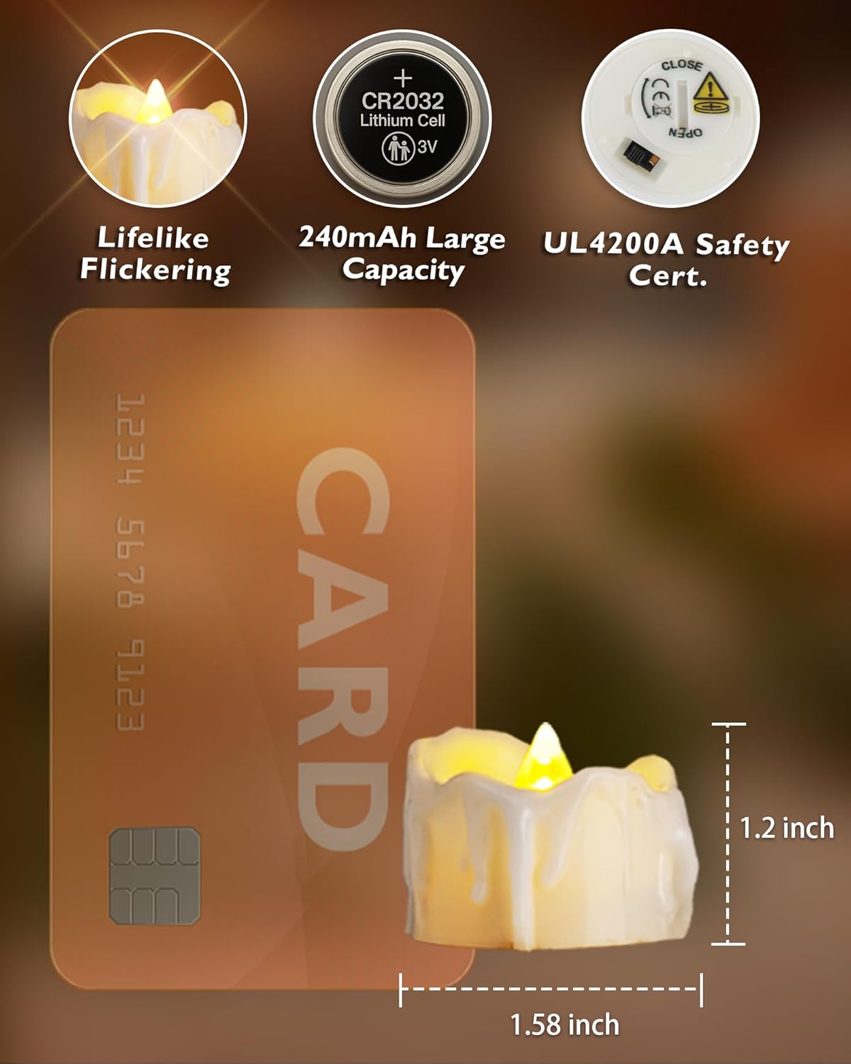 • LIFELIKE FLICKER: Designed to mimic the charm of real candles—soft, warm flicker and a melted edge look. Whether you're setting a cozy mood in your living room or decorating wedding tables, they add instant ambiance