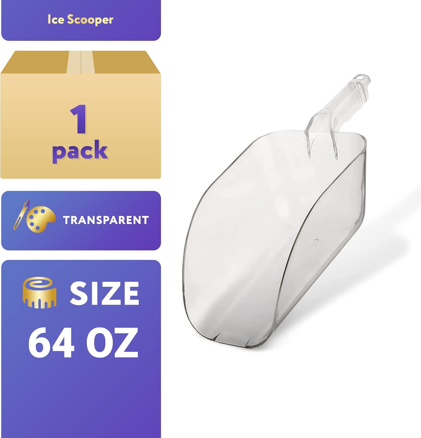 APQ Ice Scooper 64 oz. Clear Plastic Scooper for Food Service Applications Flat Bottom Scooper Freezer Ice Machine Restaurants Kitchen Buffet Party Candy Popcorn Heavy Duty Long Lasting