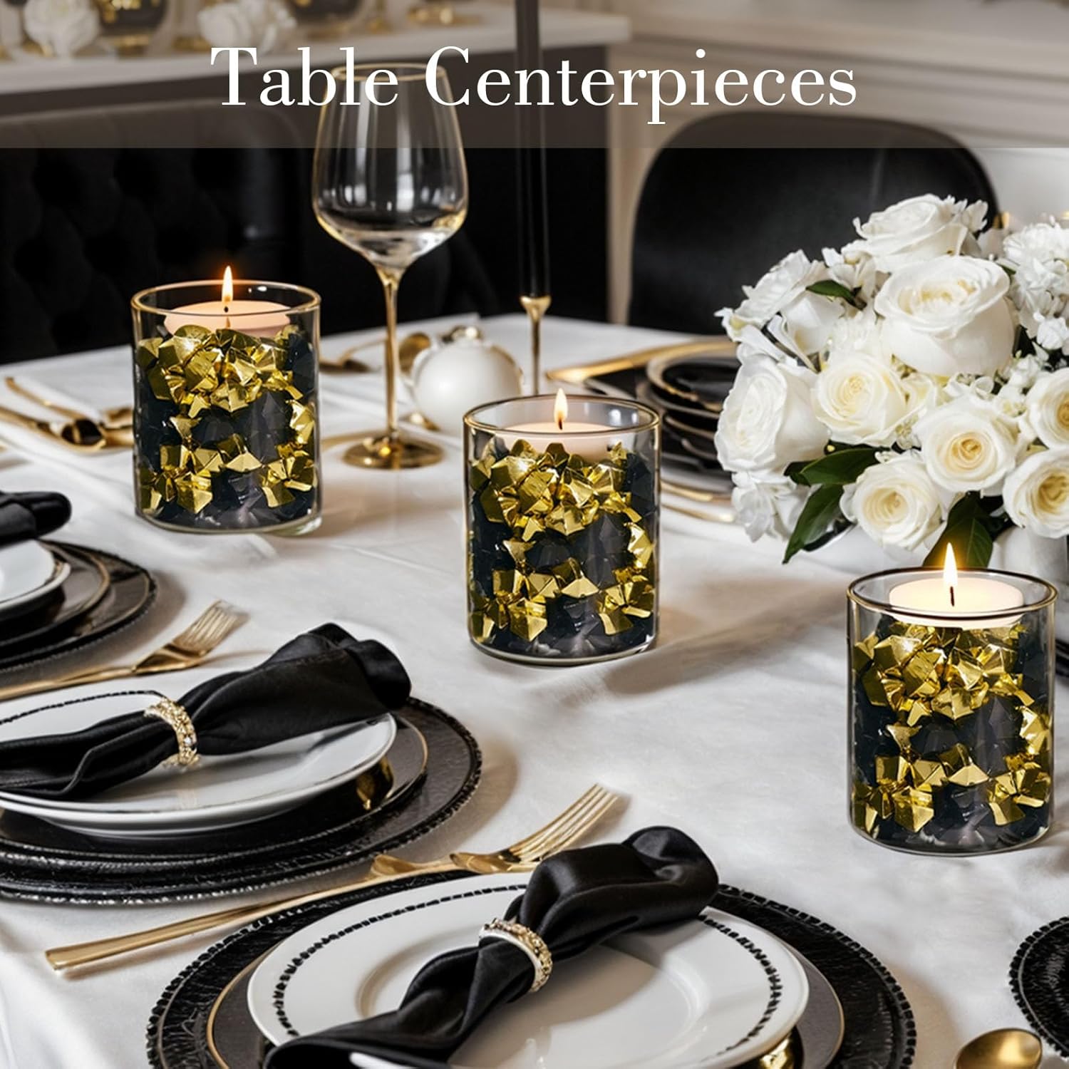 DomeStar 150PCS Fake Gold Ice, Acrylic Ice Fake Plastic Gold Nuggets Rocks Gems Marble Vases Fillers for Table Scatter Birthday Wedding Party Decoration