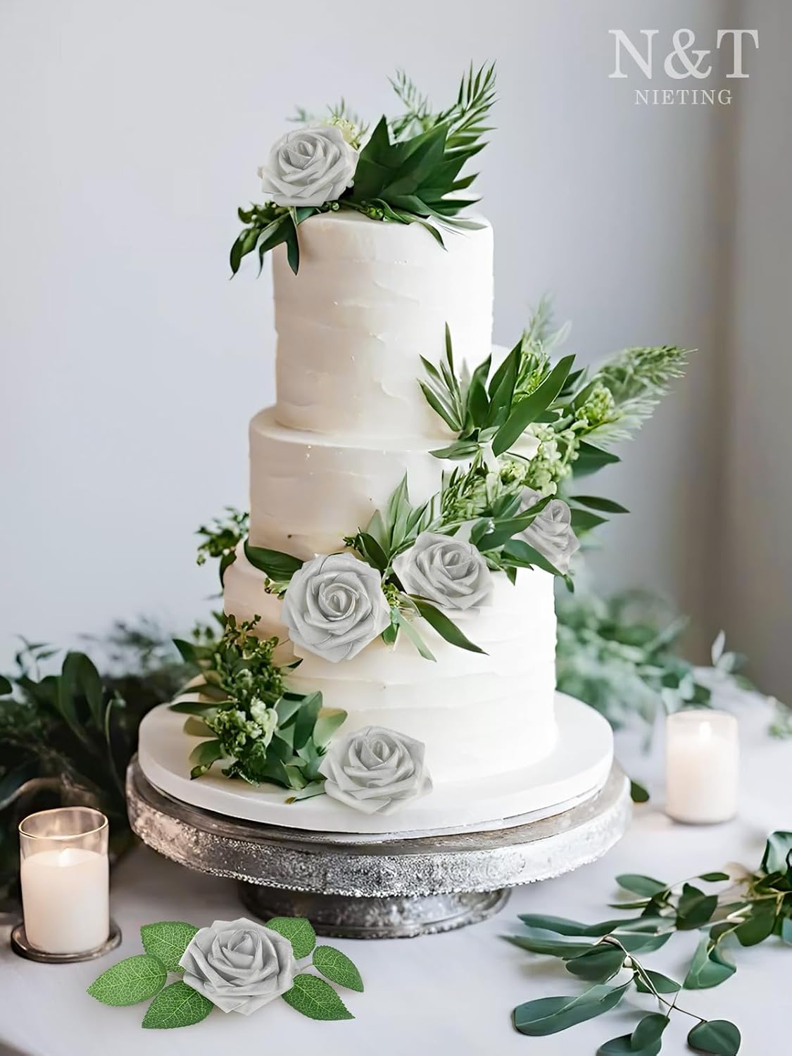 • Real Looking Roses: Realistic 25 silver white artificial roses. Our artificial roses looks pure and elegant. Enjoy the beauty of natural looking flowers without watering, add great touch to your home.
