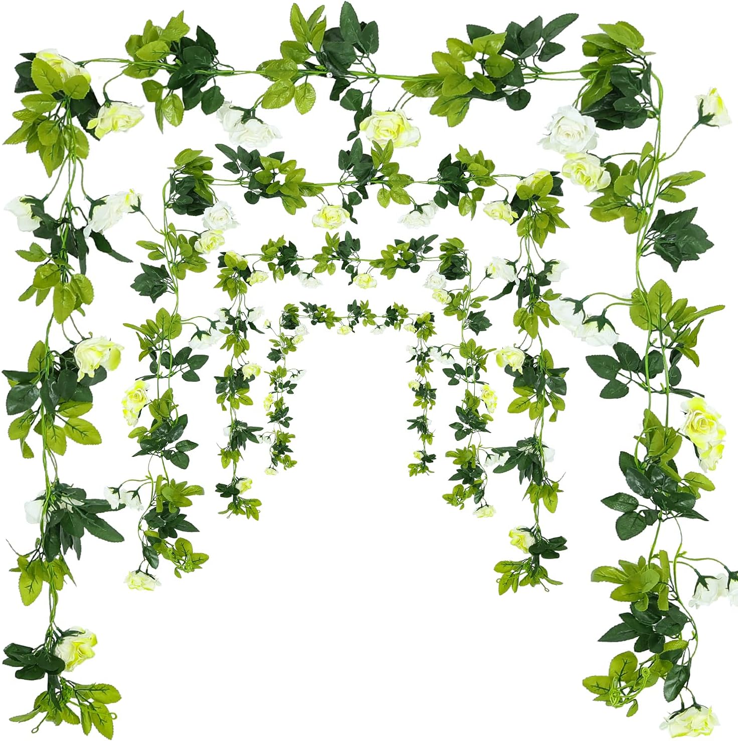JUSTOYOU 2 Pack (15.8FT) Fake Rose Garland, Artificial Rose Vines Flowers Hanging Silk Rose Vine Wedding Home Backdrop Party Arch Arrangement Decoration