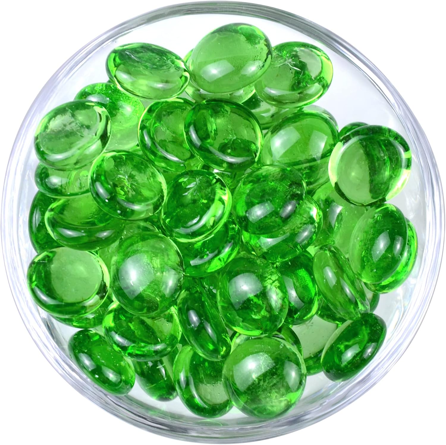 KINGOU Flat Glass Gems/Marbles/Stones/Beads for Vase Filler, Table Scatter, Games - 1 Lbs (17-19mm, Approx. 3/4")-Green Luster