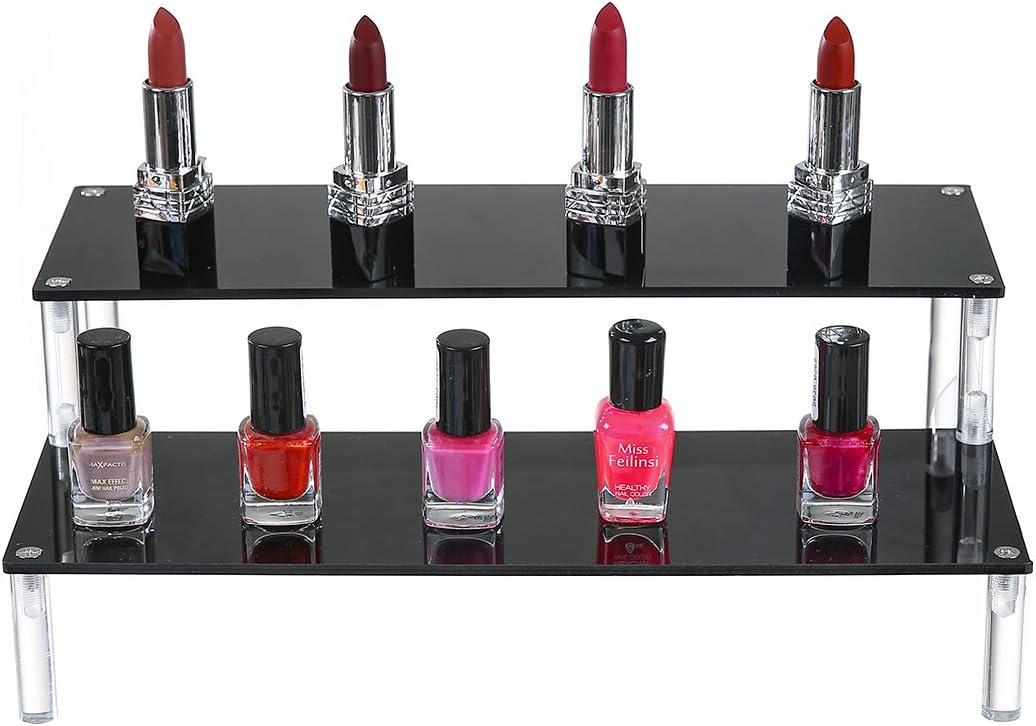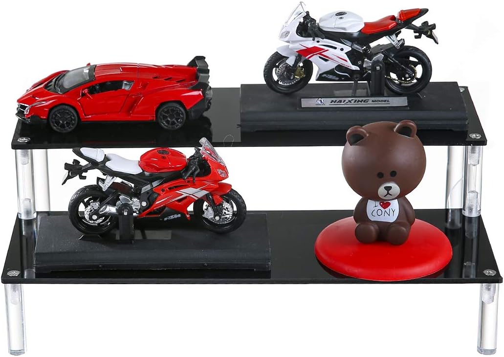 BYCY Acrylic Black 2-Tier Riser Display Shelf for Figures, Desserts Holder, Collections Organizer and Cosmetic Items Shelf (2 Tier 12" X 6.9" X 4.25")…