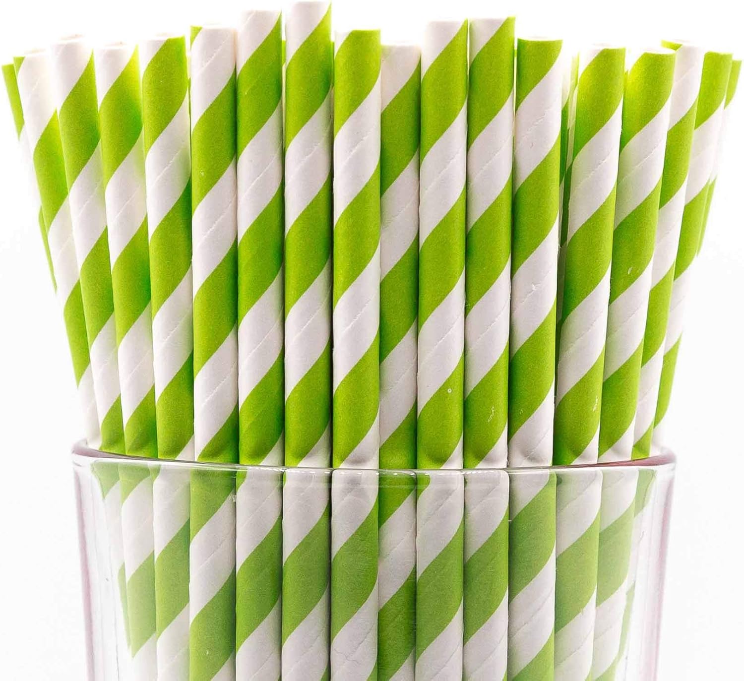 • Pack of 300 Green Swirls paper straws that are 7.75” long and have a diameter of 0.25”. Made with 4-ply paper which translates into thicker and more resilient straws that won’t wilt or change shape in both hot and cold drinks.