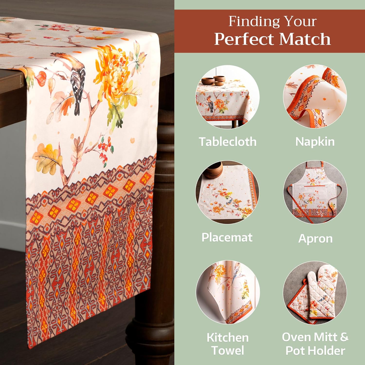 • Enhance Your Home: Crafted from 100% cotton, this reusable table runner adds a warm, seasonal touch to your dining decor. Ideal for Thanksgiving, Halloween decorations, or Christmas decorations—pair it with matching linens for an elegant fall or holiday gift