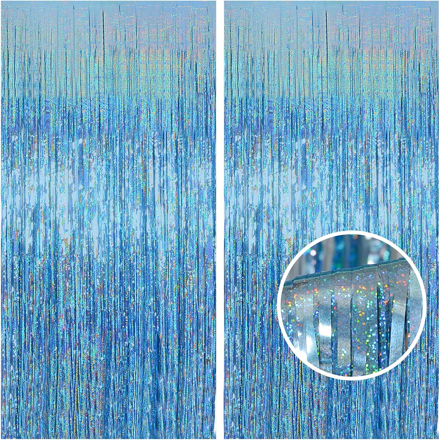 Melsan 2 Pack 3.2 ft x 8.2 ft Tinsel Foil Fringe Curtains Backdrop, Sparkle Metallic Foil Curtains for Party Photo Booth Props Baby Shower Memaid Decoration, Light Blue