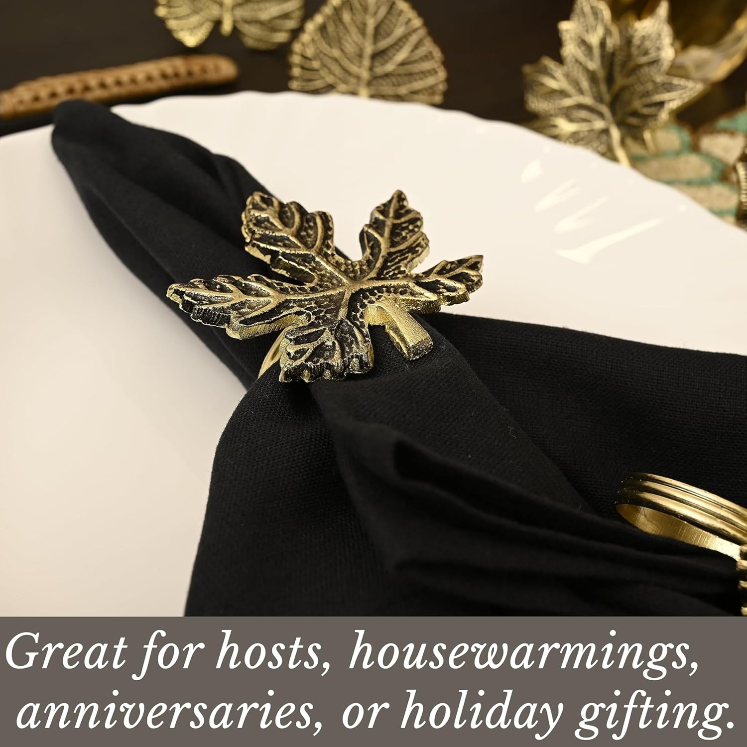 6-Piece Metal Napkin Rings - Antique Gold Harvest Leaf Napkin Rings - Decorative Table Accents for Holiday Party, Dinner, Family Gatherings, Table Décor Weddings & Everyday Use - ALPHA Living HOME