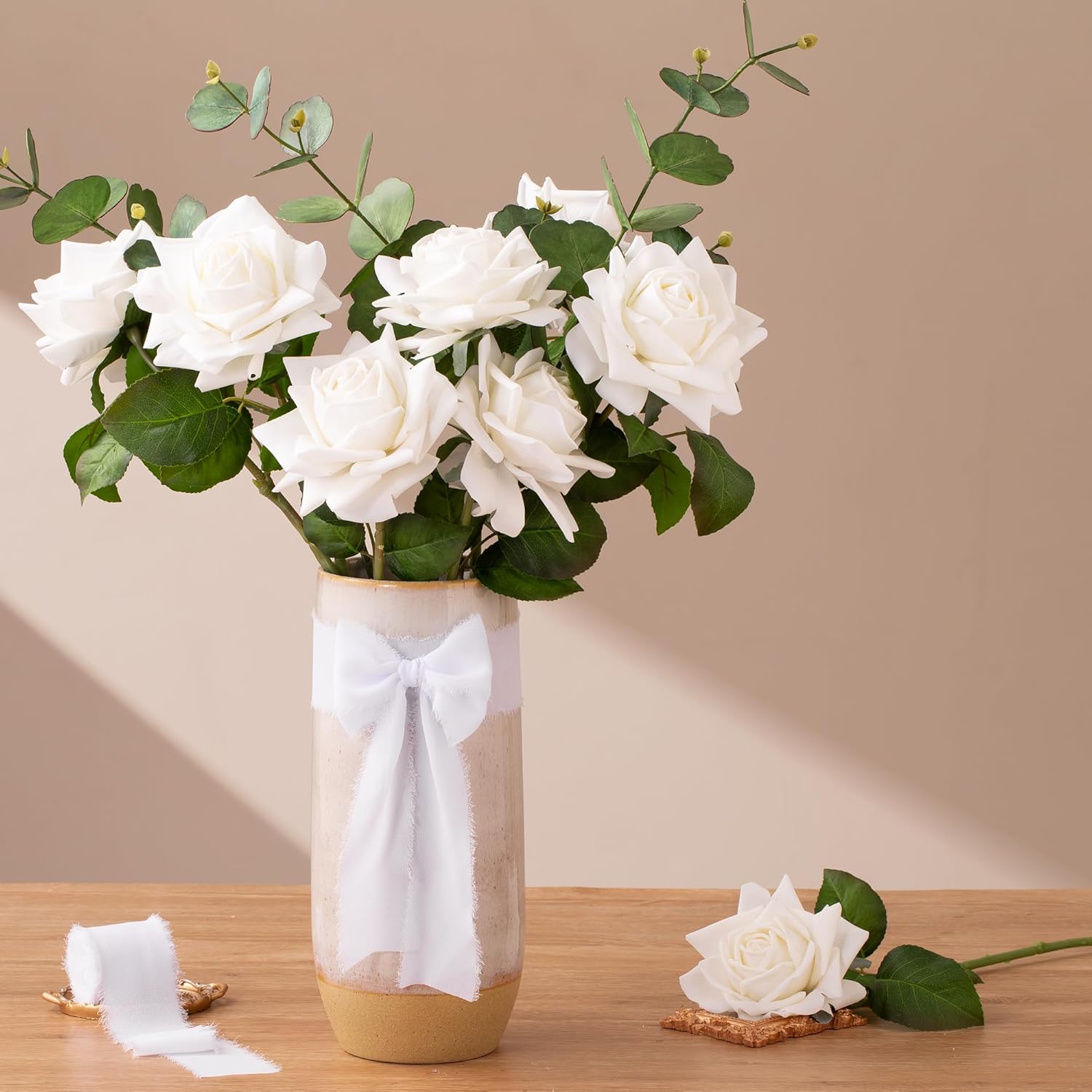 • 【Size and Color】Each roll of chiffon ribbon is 2 inches wide and 7 yards long, perfect for various creative uses such as making bows, decorating wreaths, and DIY crafts. This set includes 3 rolls white ribbons. These vibrant frayed ribbons add a rustic charm to your creations, ideal for bouquet wrap or gift ribbon.