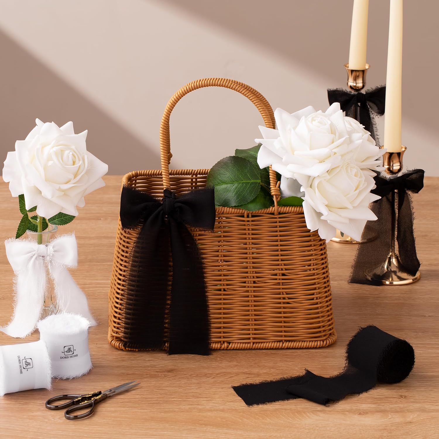 • 【Multiple Applications】This chiffon silk ribbon is great for gift wrapping, wedding decorations, wedding invitations, birthday parties, holiday celebrations, bridal showers, newborn photography props, wedding aisle backgrounds, boutonnieres, flower girl baskets, bouquet wrapping ribbons, Easter baskets, and even Christmas gift wrapping. Its elegant appearance makes it an ideal choice for bohemian or rustic DIY projects.