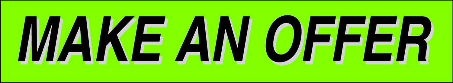 • Fluorescent Chartreuse, 3-d Shaded Design Adhesive Windshield Sign. Size: 15" Long X 2 3/4" Tall.