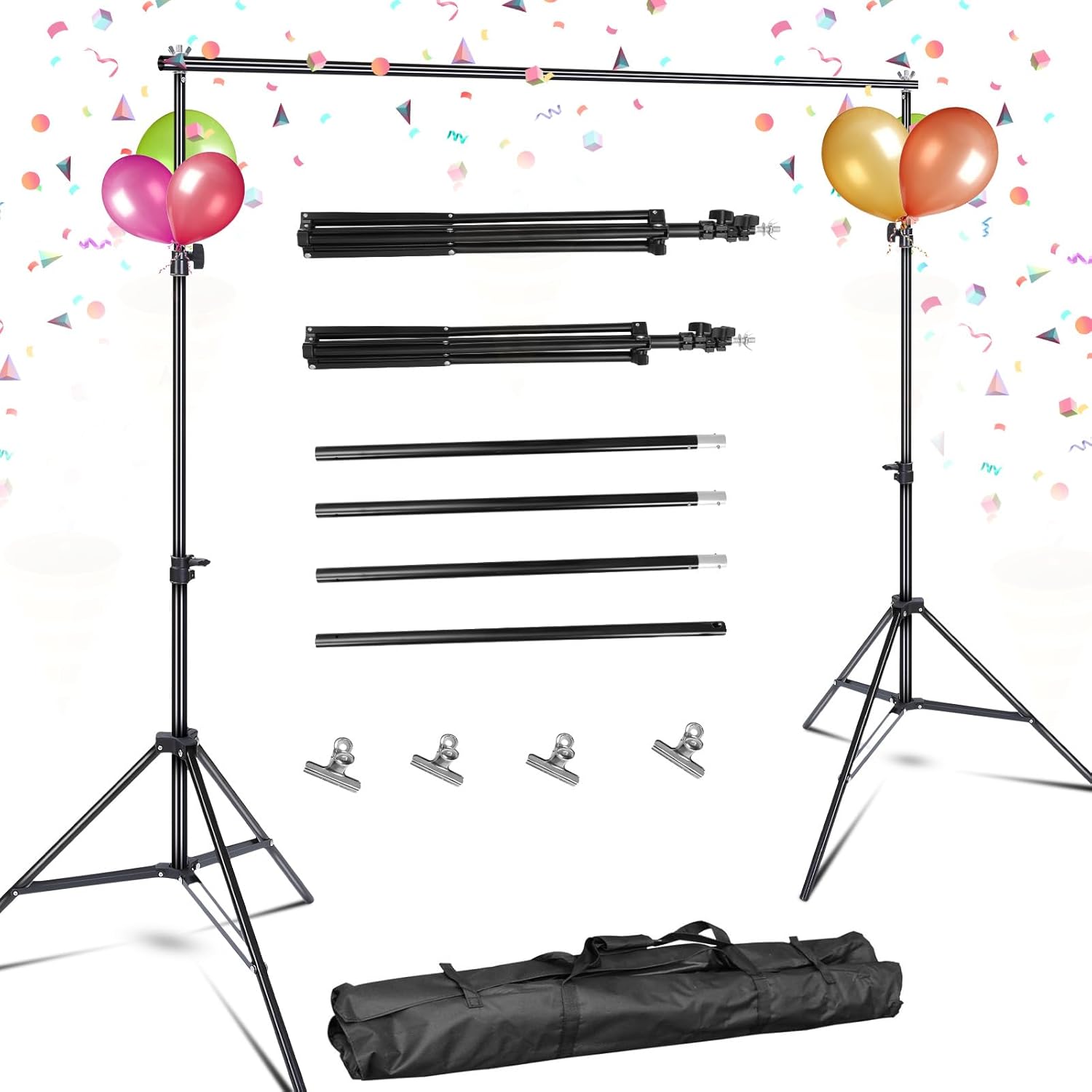 • ๐Ÿ”— **[Includes 4 Strong Clamps]** โ€“ This backdrop support system includes four sturdy clamps to securely hold muslin, canvas, paper, or other backdrops in place, preventing wrinkles and movement. Perfect for photo shoots, video backgrounds, live streaming, and more.