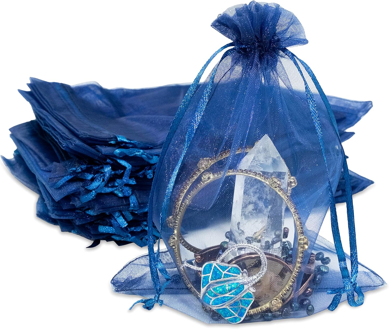 TheDisplayGuys 100-Pack 6x8 Navy Blue Sheer Organza Gift Bags with Drawstring, Jewelry Candy Treat Wedding Party Favors Mesh Pouch
