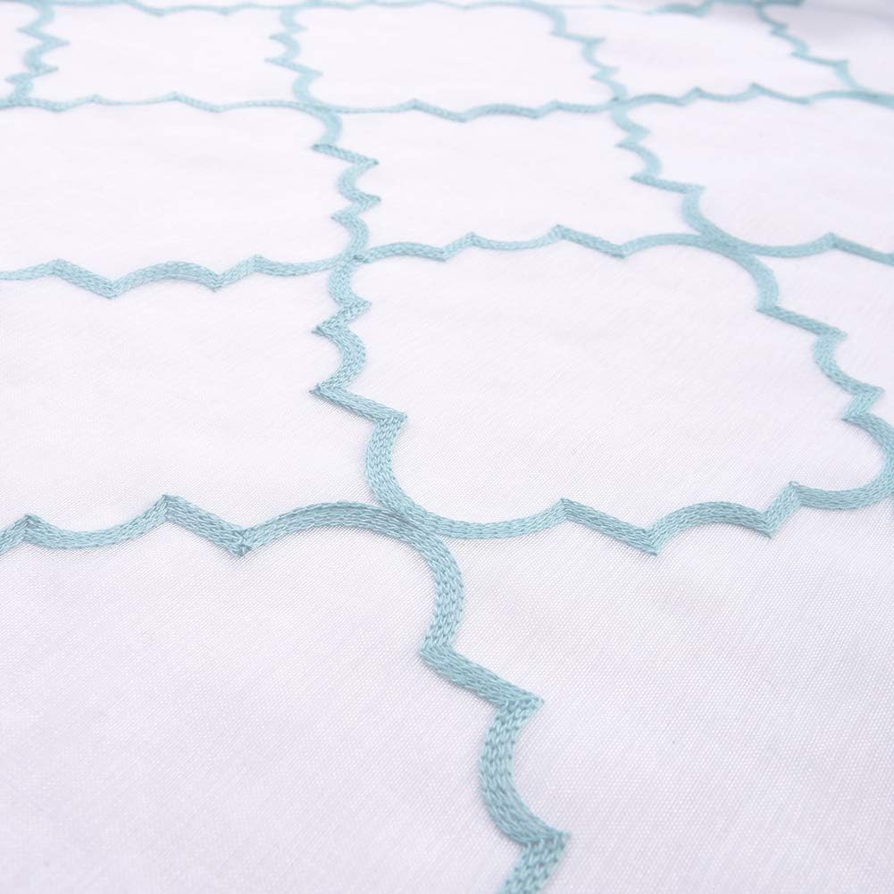 Blue Sheer Curtains 84 Inches Long, Moroccan Embroidered Rod Pocket Sheer Drapes for Living room, Bedroom, 2 Panels, 52"x 84", Semi Crinkle Voile Window Treatments for Yard, Patio, Villa, Set of 2.