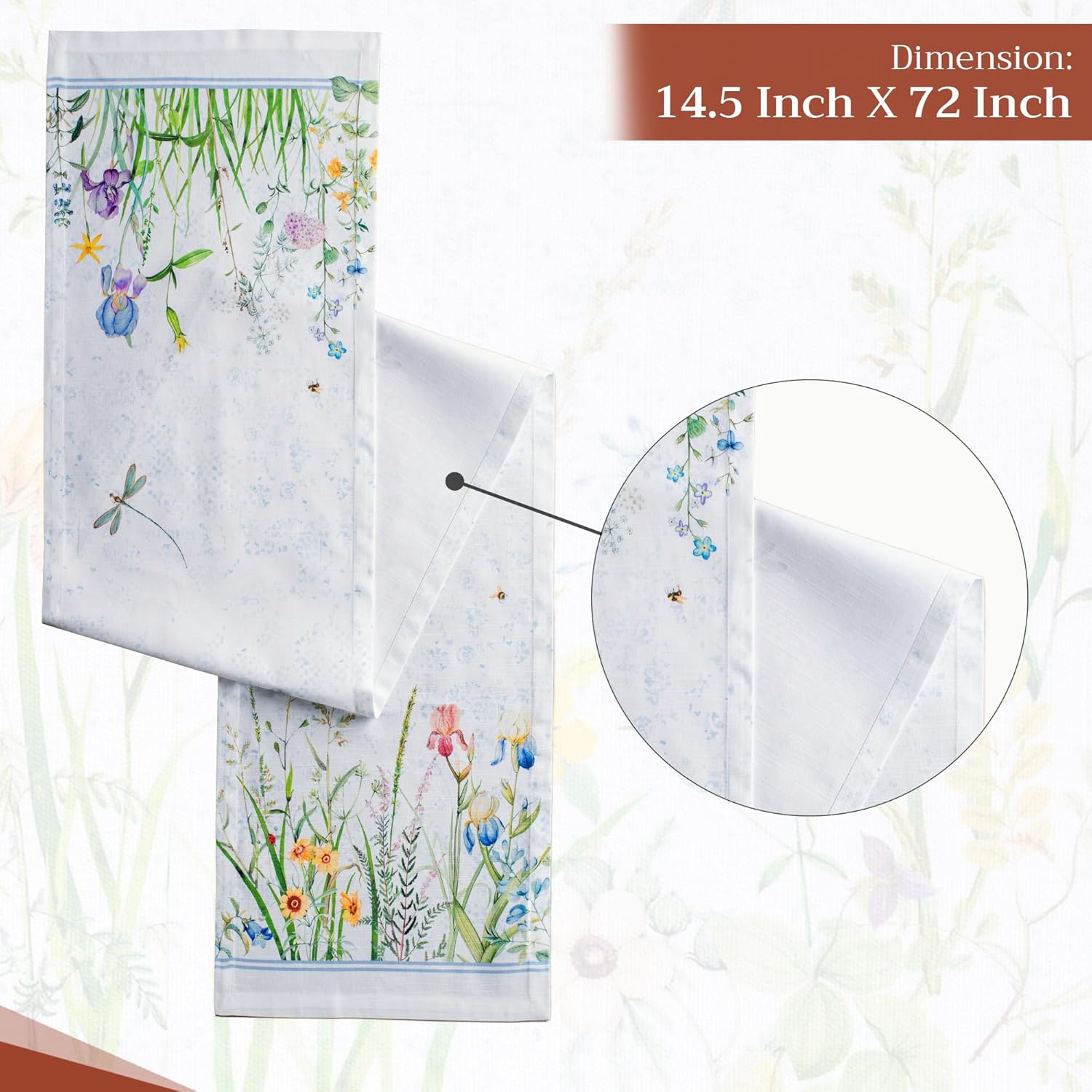Maison d' Hermine Table Runner 100% Cotton Single Layer Table Runners 72 inches Long Decorative for Home Kitchen Dining Party Wedding Bridal Shower Spring Summer (Fleurs De Mai, 14.50" x 72")