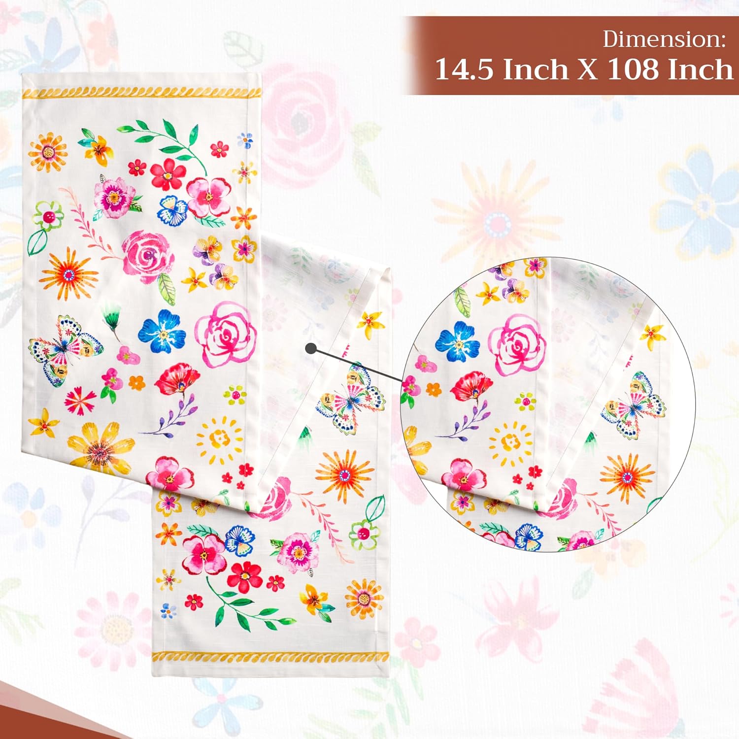 • Package includes: 1 table runner measuring 14.5" x 108". Ideal for banquet tables, dining tables, or adding a spring, Thanksgiving, Christmas theme to your party décor. Our table runners 108 inches long offers a unique charm for both casual and festive settings.
