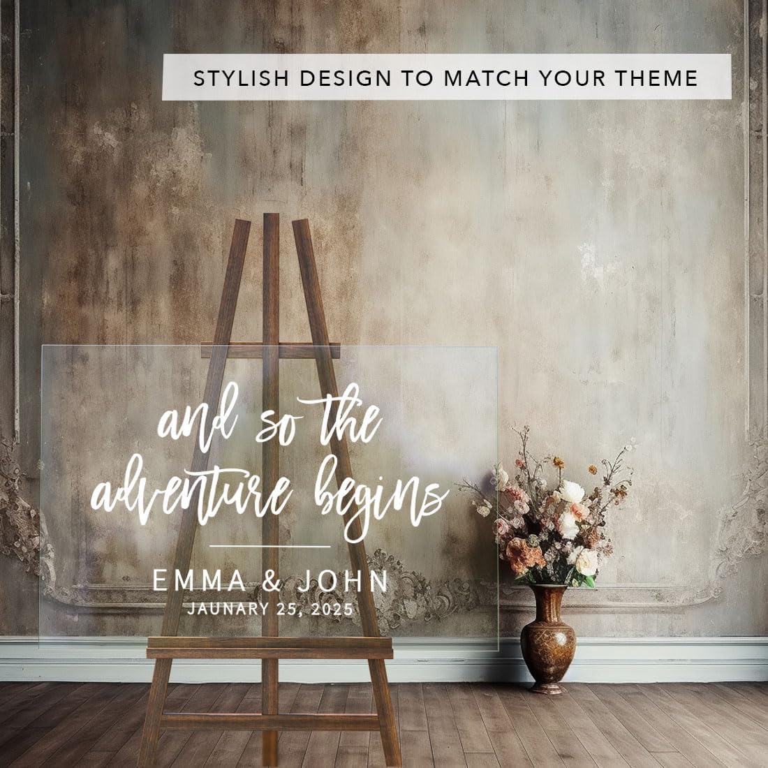 Andaz Press Custom Large Wedding Acrylic Sign, 16 x 24 Inches, The Adventure Begins, Personalized Sign, Welcome Sign For Modern Wedding Decor Welcome To Our Beginning