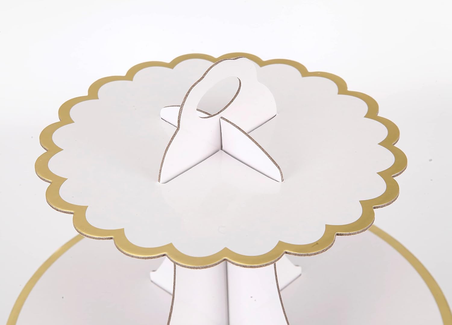 3-Tier Cupcake Stand, Lace Trim Cake Stand Holder, Tiered DIY Cupcake Stand Tower for Dessert Table Displays, Birthday Theme Party Favors Decoration, Floral Tea Party, 12" W x 12.8" H, White