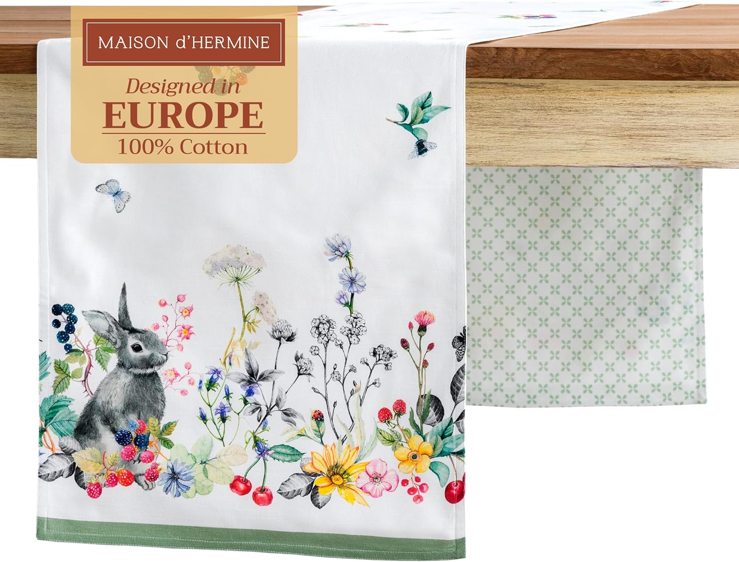 Maison d' Hermine Table Runner 100% Cotton Double Layer Table Runners 108 inches Long Decorative for Kitchen Dining Party Baby Shower Wedding Bridal Shower Spring Summer (Printemps, 14.50" x 108")